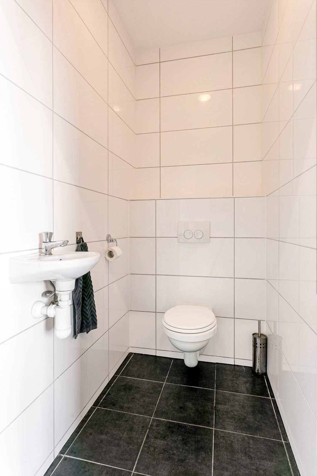 - Toilet met handwasbak en tegelwerk als vloer- en wandafwerking