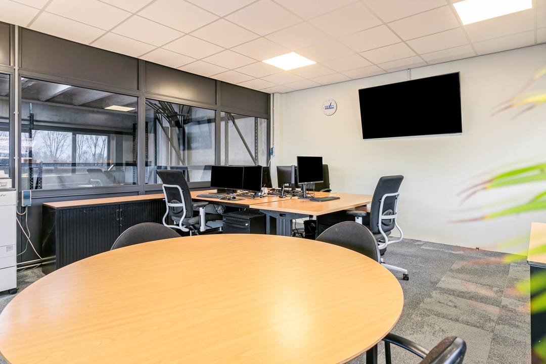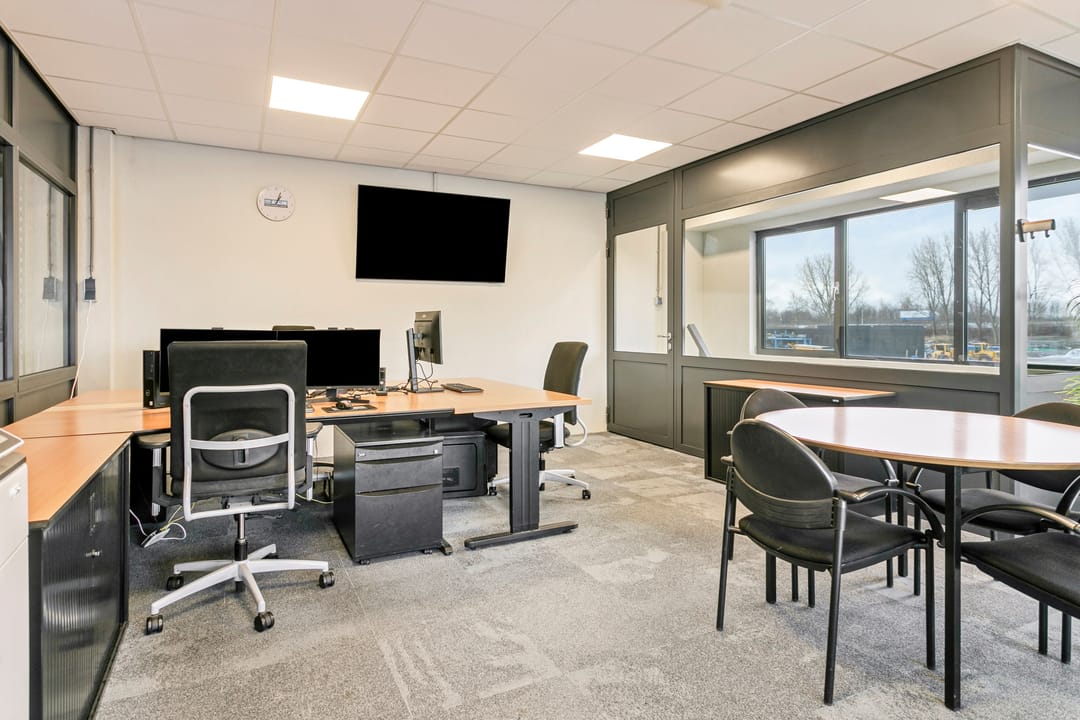 Bedrijfsunit (ca. 153 m2) met bedrijfsruimte van ca. 77 m2, kantoorruimte van ca. 45 m2, entree, pantry, toilet, 4 parkeerplaatsen en verdere aanhorigheden