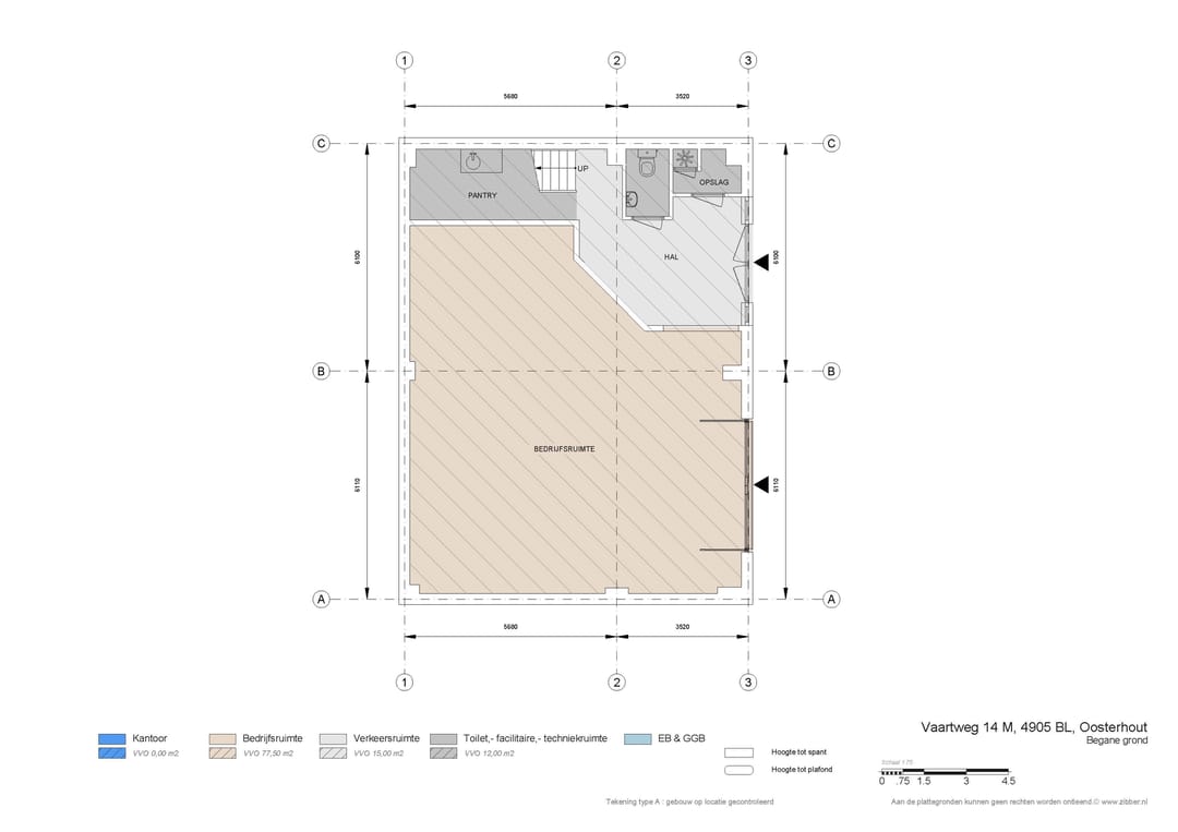 - Toegang tot bedrijfsruimte en vaste trap naar kantoorruimte