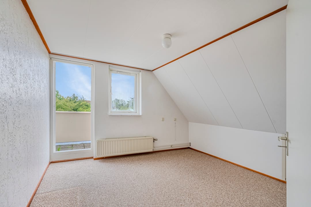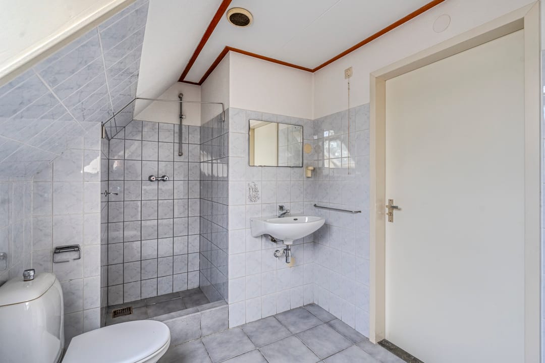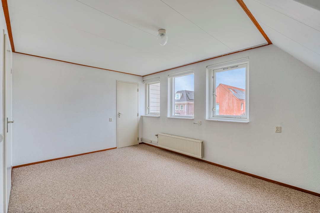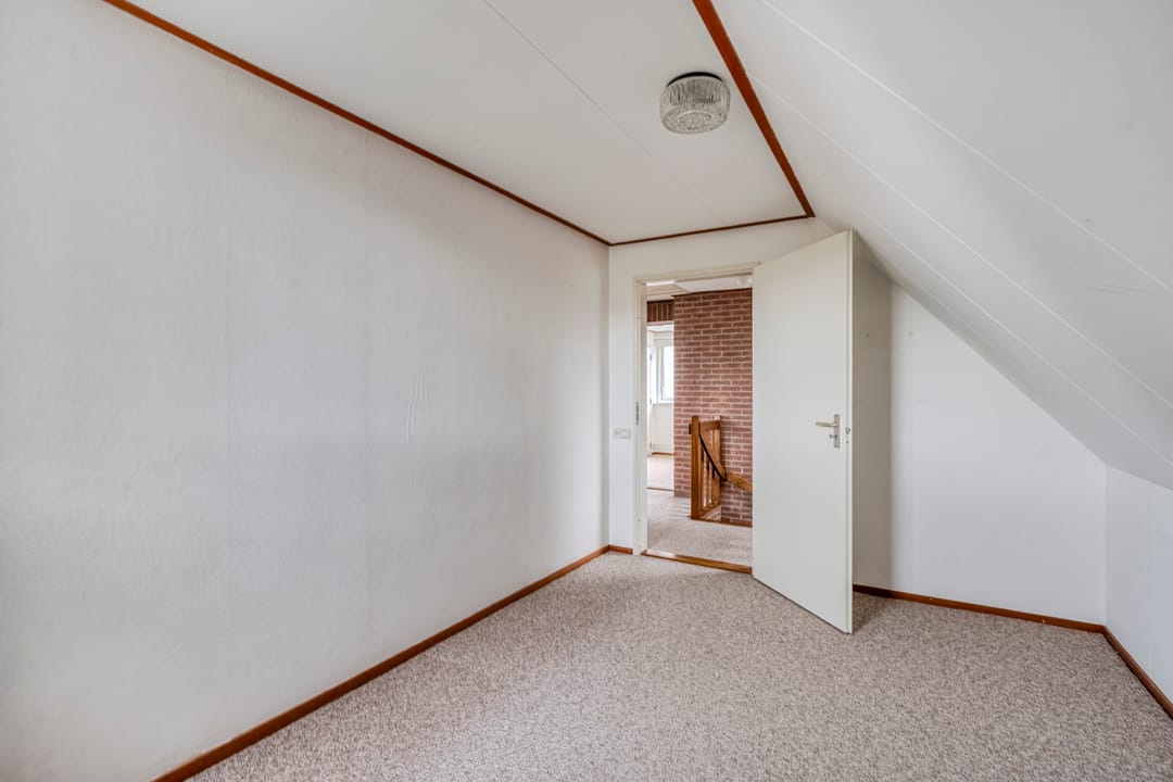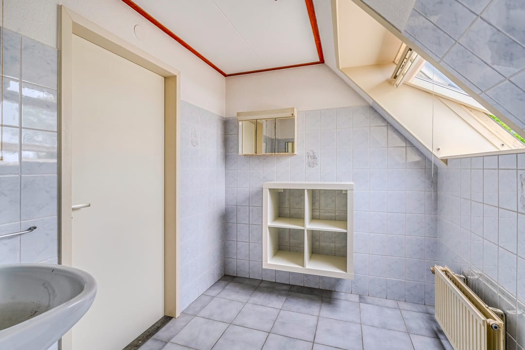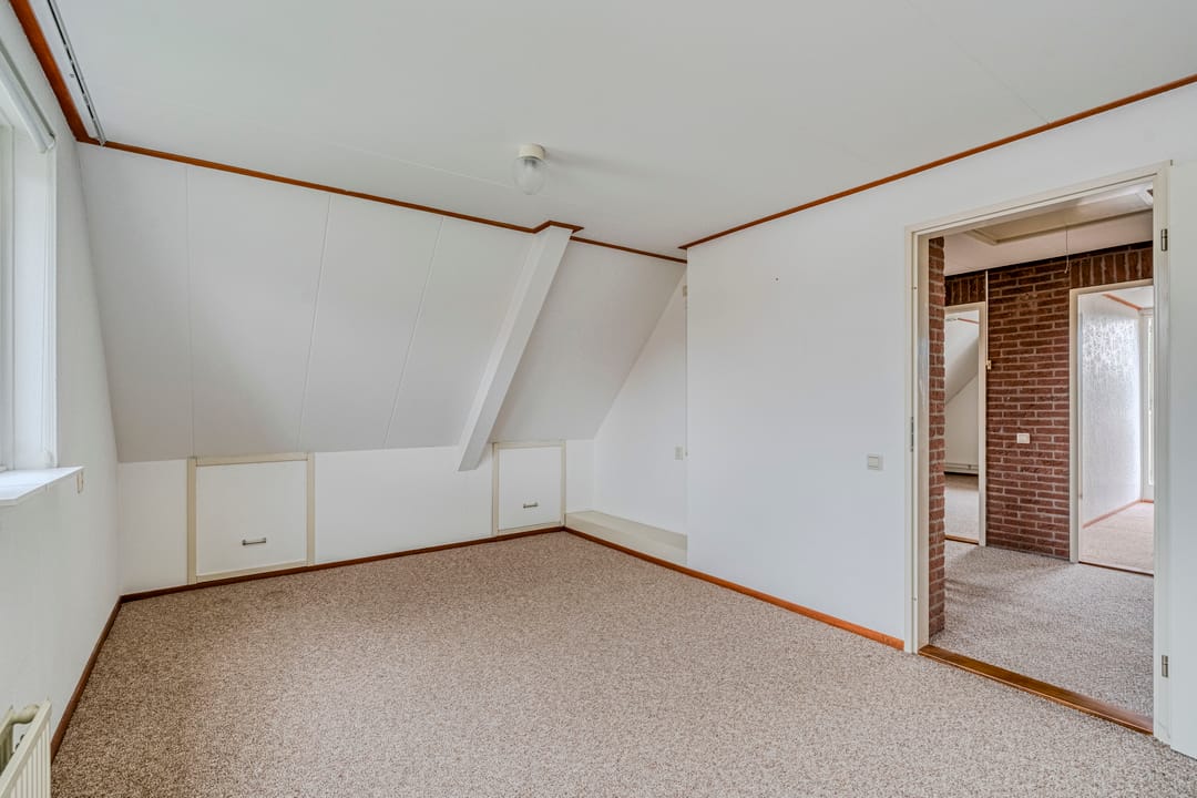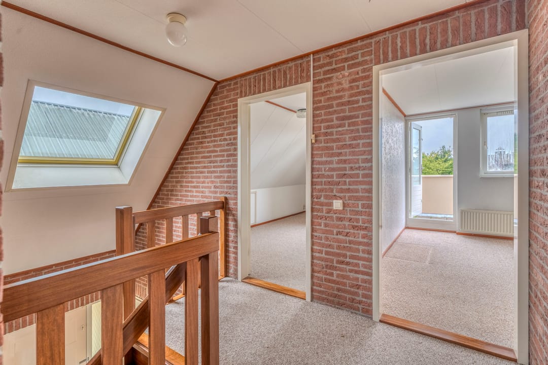 Vanaf de overloop zijn drie slaapkamers en de badkamer bereikbaar. Ook is via de overloop de vlizotrap naar de bovenste vliering toegankelijk. De slaapkamers zijn ruim en licht dankzij de grote ramen. Aan beide slaapkamers aan de achterzijde van de woning grenst het balkon. Deze is toegankelijk via één van de twee slaapkamers aan de achterzijde. De slaapkamer aan de voorzijde beschikt over een zeer grote kast, die tot achter de badkamer doorloopt. De badkamer is voorzien van douche, toilet en wastafelmeubel.