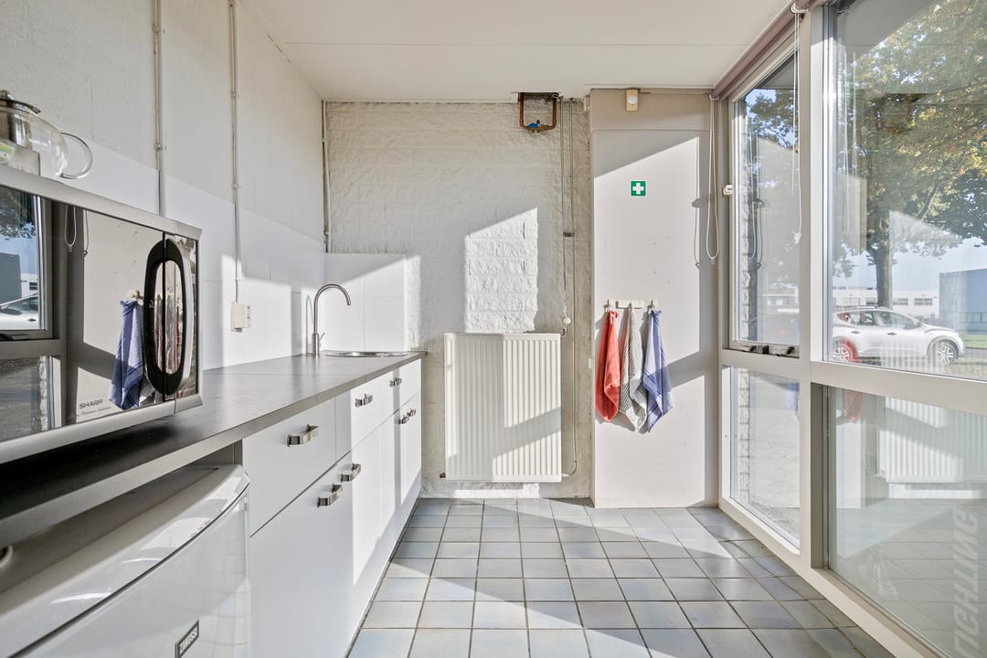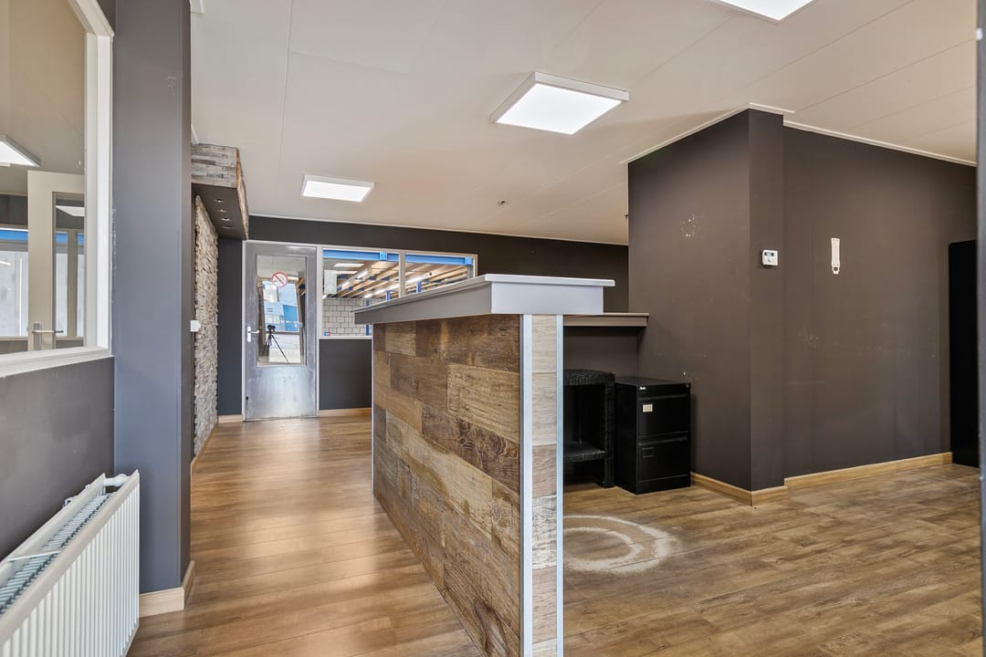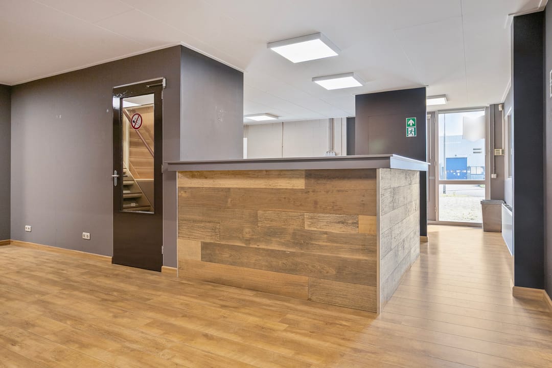 De kantoor-/showroomruimte is voorzien van een systeemplafond met led-verlichtingsarmaturen, keukenopstelling, moderne toiletgroep, c.v.-ketel voorzien van radiatoren en trapopgang naar de eerste verdieping. De grote raampartijen zorgen voor een een aangename lichttoetreding.