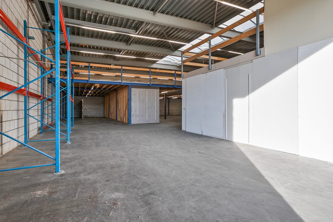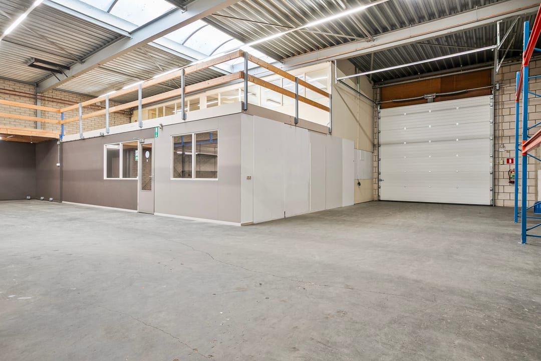 De bedrijfsruimte (vrije hoogte circa 5 meter) is voorzien van betonvloer, handmatig bedienbare overheaddeur (4 meter hoog), led-verlichtingsarmaturen, een lichtstraat en diverse elektra-aansluitingen. De aanwezige gasheaters behoren niet tot het gehuurde.
