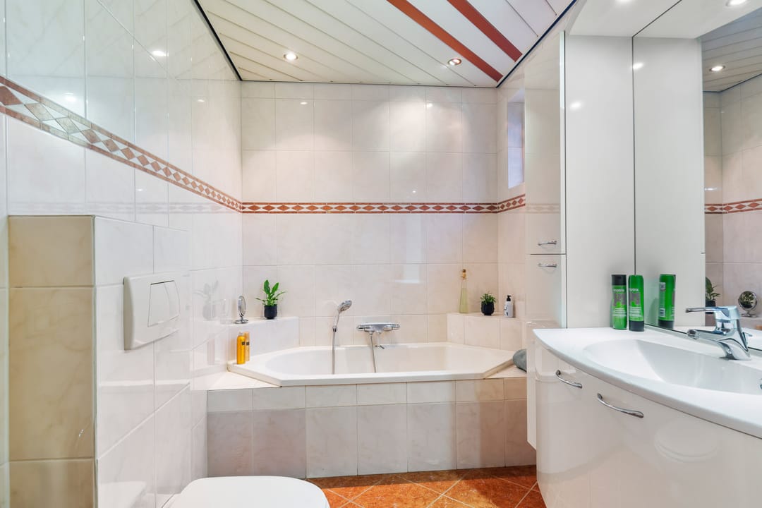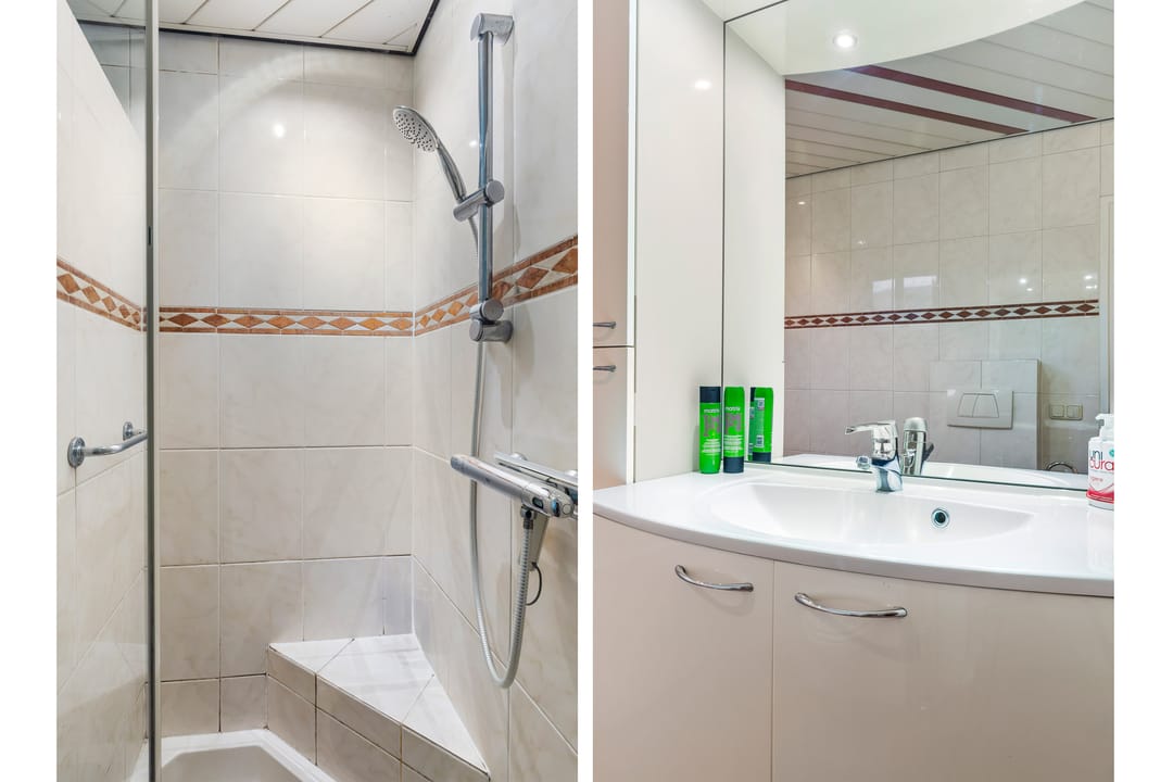 + Badkamer: Geniet van luxe en comfort in de ruime badkamer, compleet met een ontspannend bad, douchecabine, wandtoilet en wastafel.