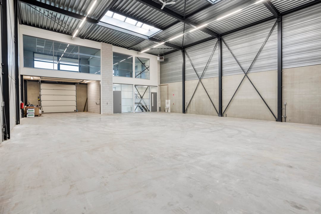 De bedrijfsruimte is voorzien van een gevlinderde betonvloer met een draagkracht van circa 1.000 kg/m², tegelwerk bij de entree, een lichtstraat ten behoeve van natuurlijke daglichttoetreding, LED-verlichtingsarmaturen, een uitstortgootsteen, gasheater en een elektrisch bedienbare overheaddeur. Tevens is de bedrijfsruimte uitgerust met LED-verlichting aan de buitenzijde van het pand. De bedrijfsruimte is volledig vrij overspannen en beschikt over een vrije hoogte van circa 7,8 meter.