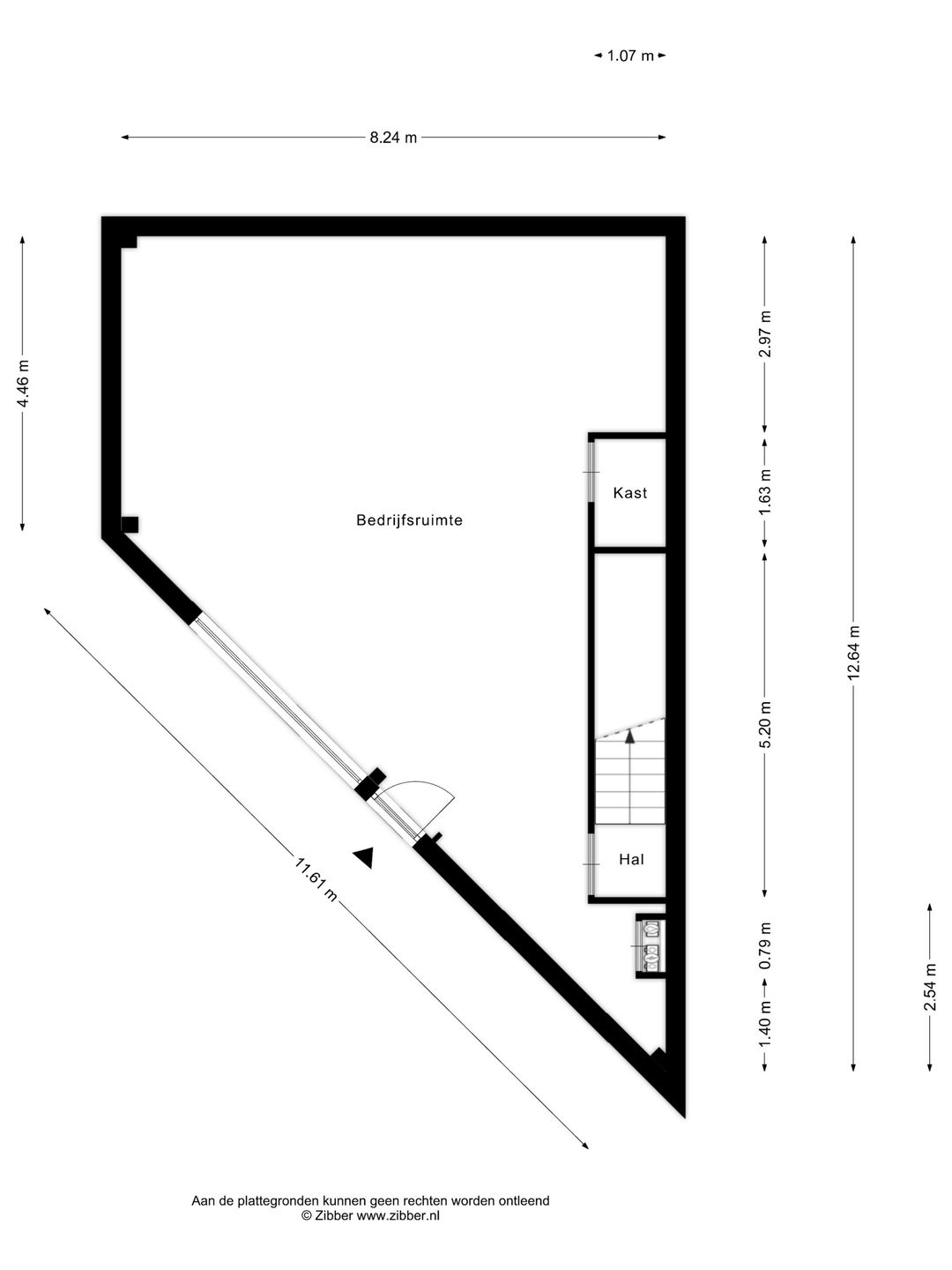 De begane grond van het object is ingericht als bedrijfsruimte en beschikt over een praktische overheaddeur en een separate loopdeur, waardoor logistieke processen efficiënt kunnen worden ingericht. De ruimte leent zich uitstekend voor opslag, productie of werkplaatsactiviteiten.