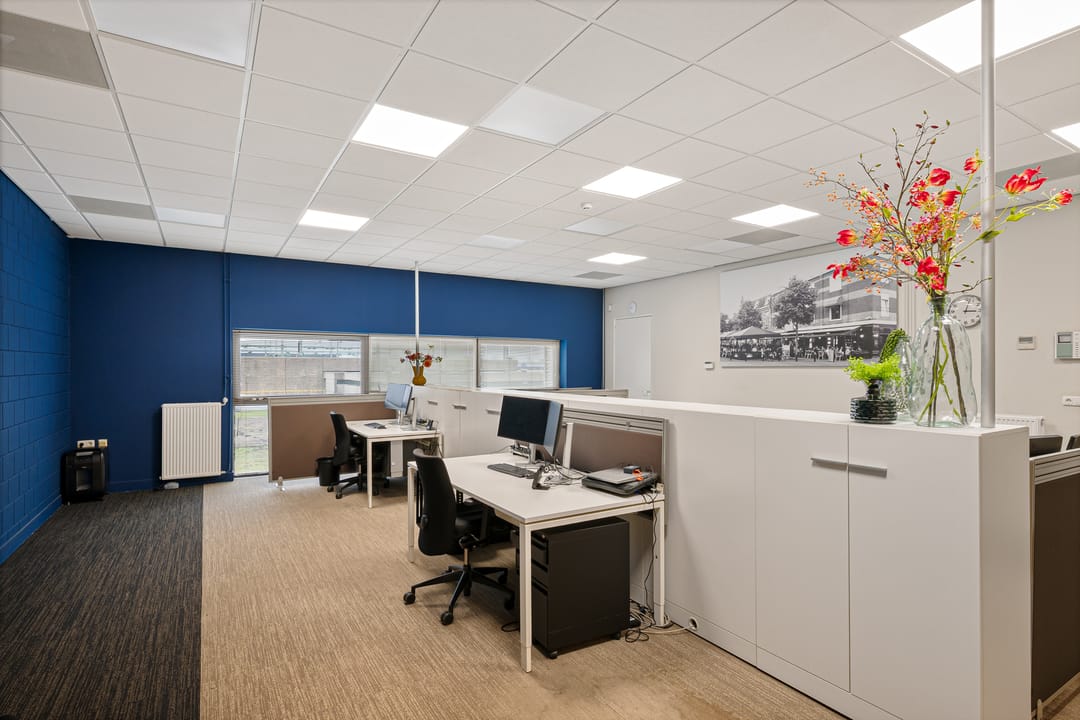 Hier bevindt zich een lichte, representatieve en goed bruikbare kantoorruimte ,met twee afsluitbare spreekkamers een kantoorruimte en een grote presentatie ruimte.