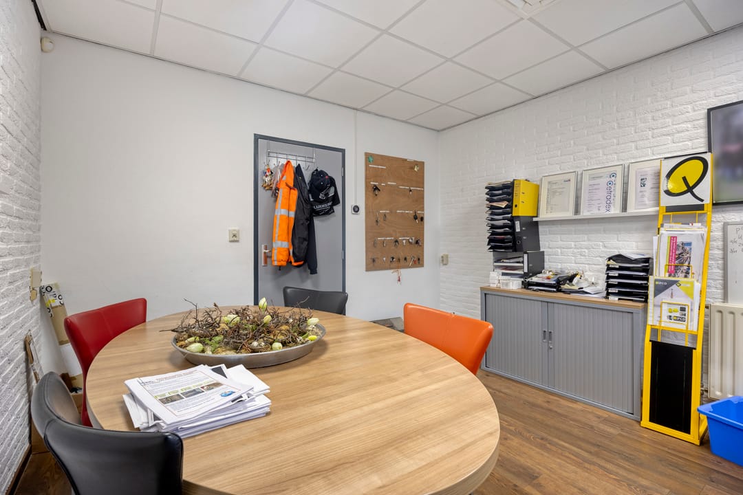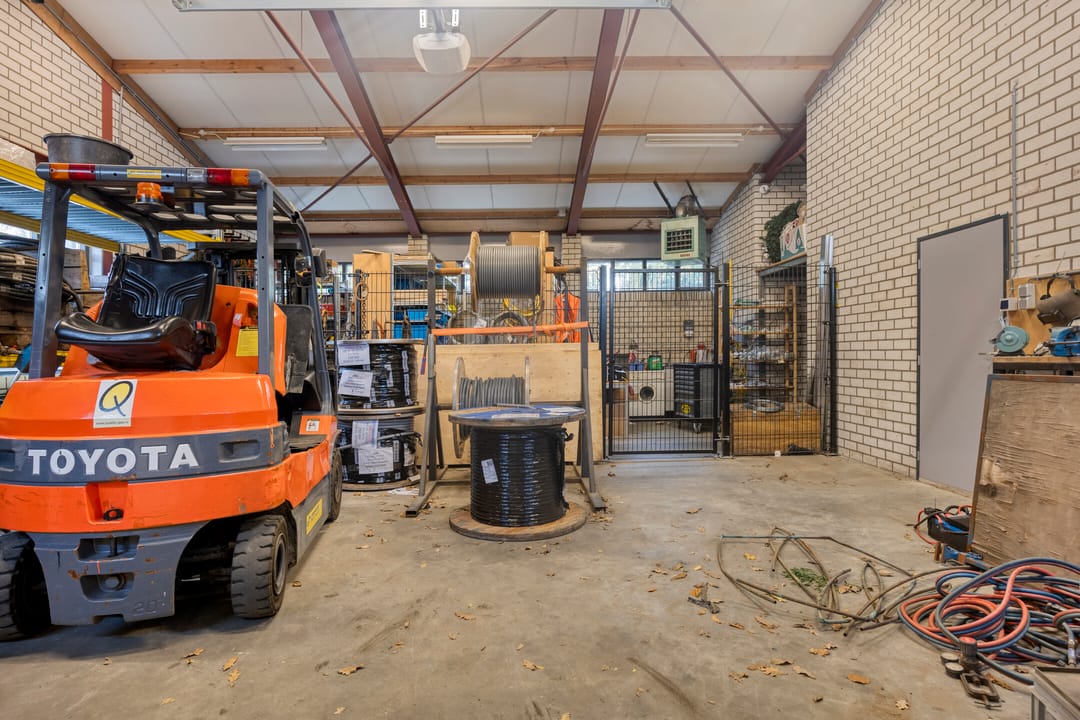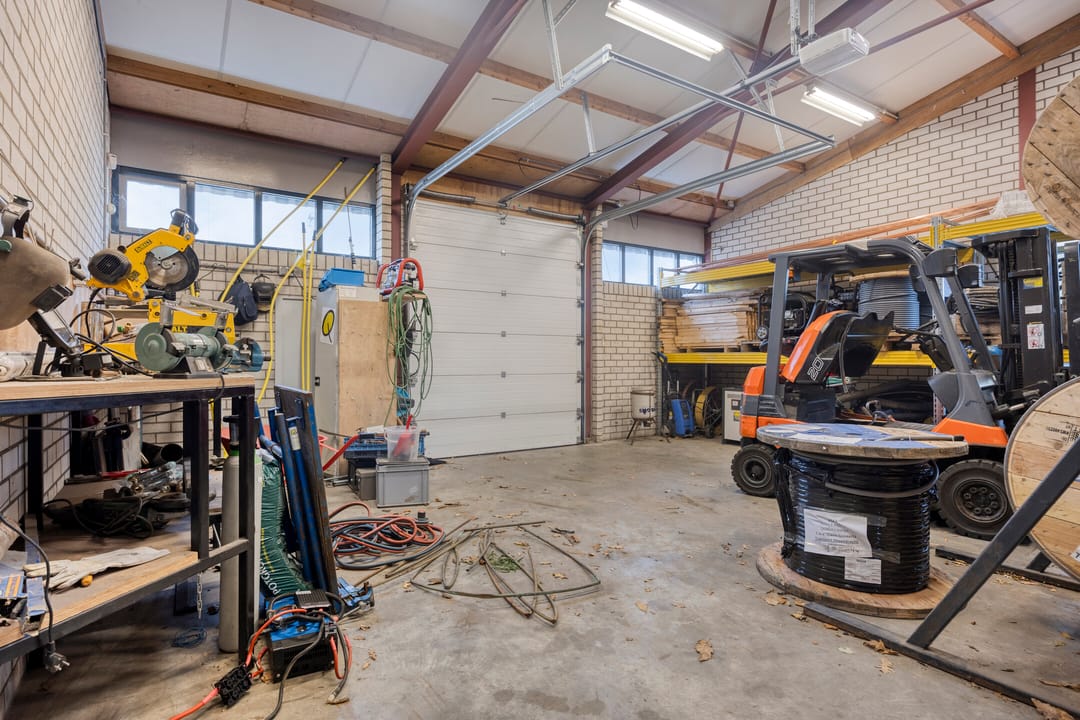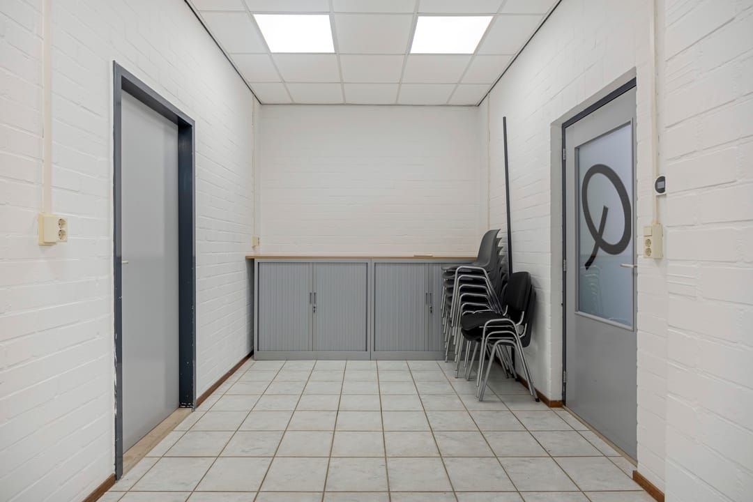 Aansluitend bevindt zich de bedrijfsruimte, voorzien van een overheaddeur, betonvloer en een goede vrije hoogte. Deze ruimte is ideaal voor opslag, montage of lichte productieactiviteiten en beschikt over voldoende daglichttoetreding. De bedrijfsruimte is verder uitgerust met LED-verlichting voor energiezuinig gebruik.