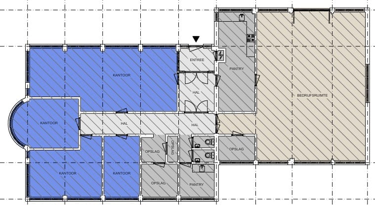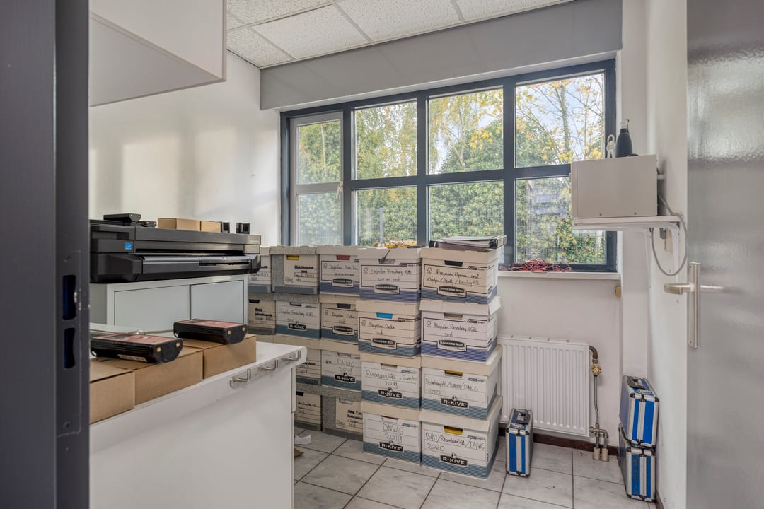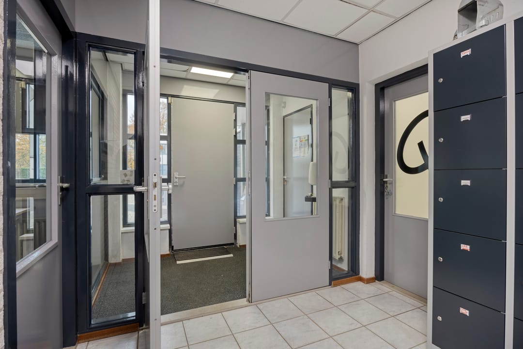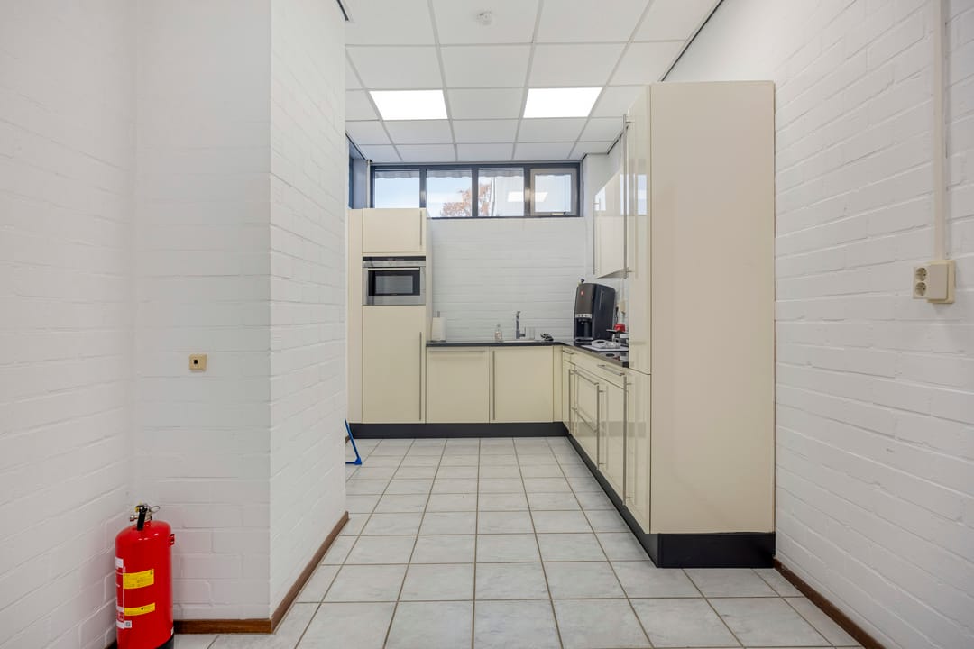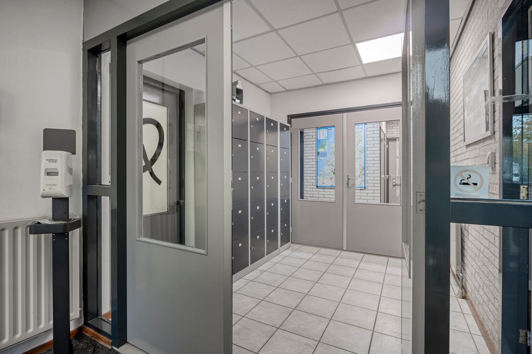 Aansluitend bevindt zich de bedrijfsruimte, voorzien van een overheaddeur, betonvloer en een goede vrije hoogte. Deze ruimte is ideaal voor opslag, montage of lichte productieactiviteiten en beschikt over voldoende daglichttoetreding. De bedrijfsruimte is verder uitgerust met LED-verlichting voor energiezuinig gebruik.