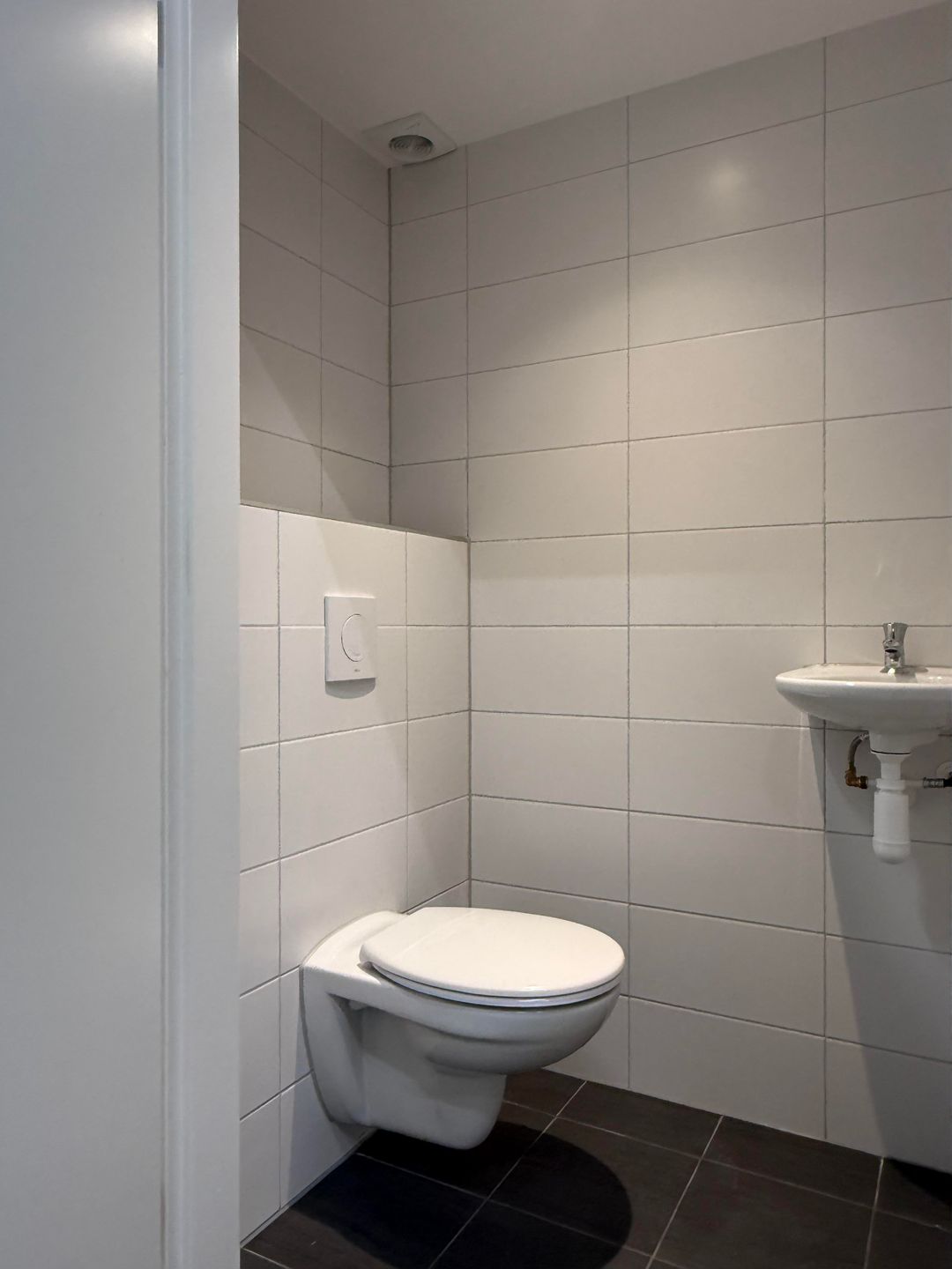 - betegelde toiletruimte met hangend toilet en fonteintje;