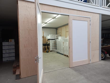 Op de verdieping zijn zowel werkruimtes als opslagruimtes beschikbaar.