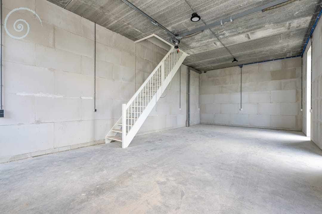 De begane grond is uitgerust met een betonvloer, een elektrisch bedienbare overheaddeur van circa 4 meter hoog, uitgebreide meterkast met 8 groepen (aansluiting 3x25A), betegelde toiletruimte met wandcloset, fonteintje en mechanische ventilatie en zijramen met veel lichtinval.