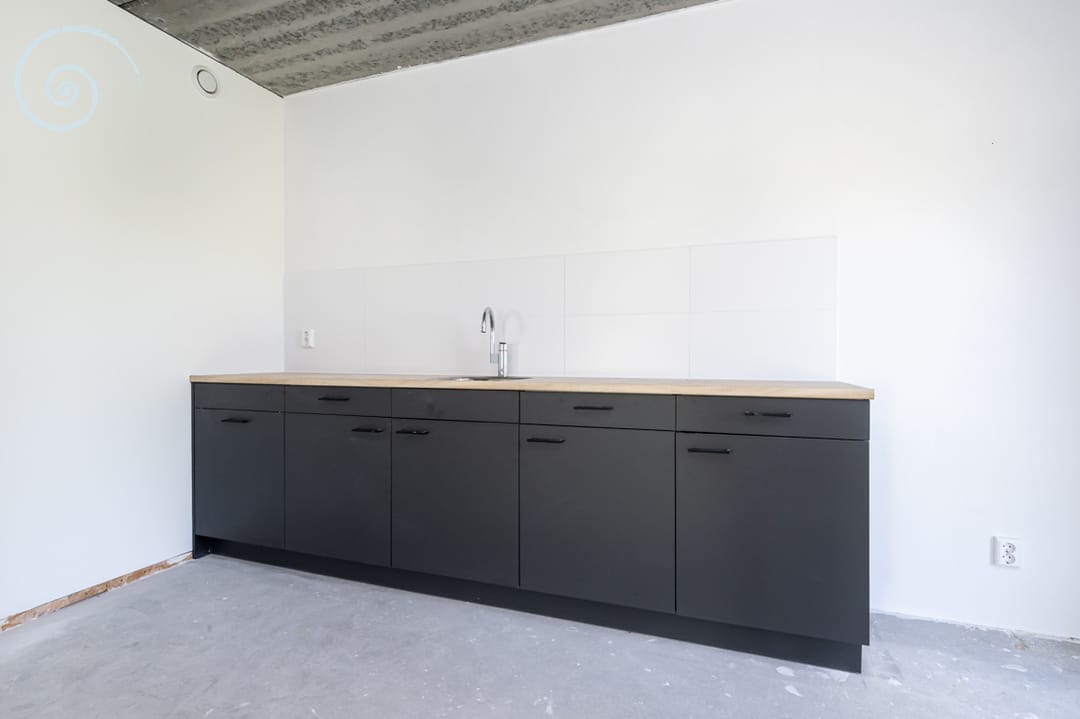 Op de verdieping vindt u een representatieve kantoorruimte, waarbij de ruimte in 2 kan worden verdeeld. De aanwezige pantry is ingericht met een vaatwasser, gootsteen en close-in boiler. De airco's zijn apart aan te sturen en kunnen verwarmen en koelen. Er zijn voldoende dubbele stopcontacten, verlichting d.m.v. spanningsrails en de wanden zijn gestukt en geschilderd.