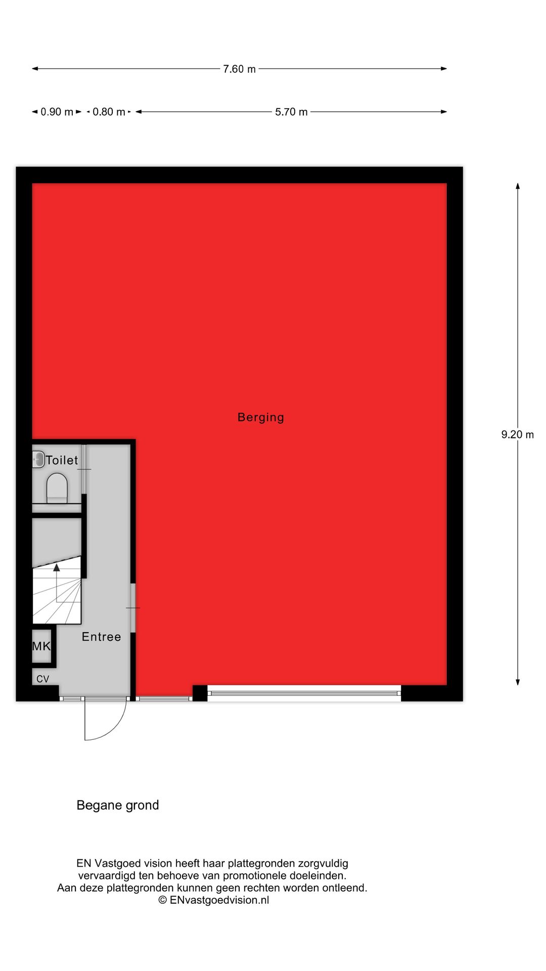 • Afmetingen: ca. 9,7 m diep, breedte variërend van ca. 3,65 m tot 7,7 m