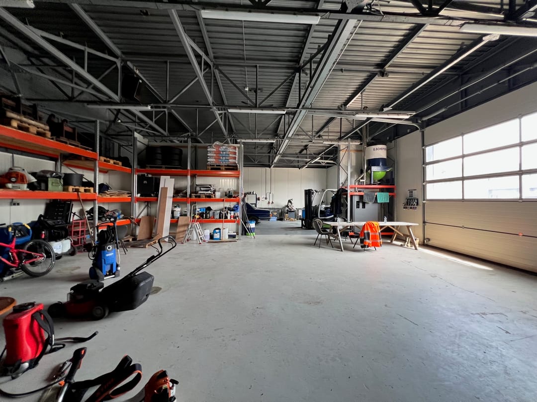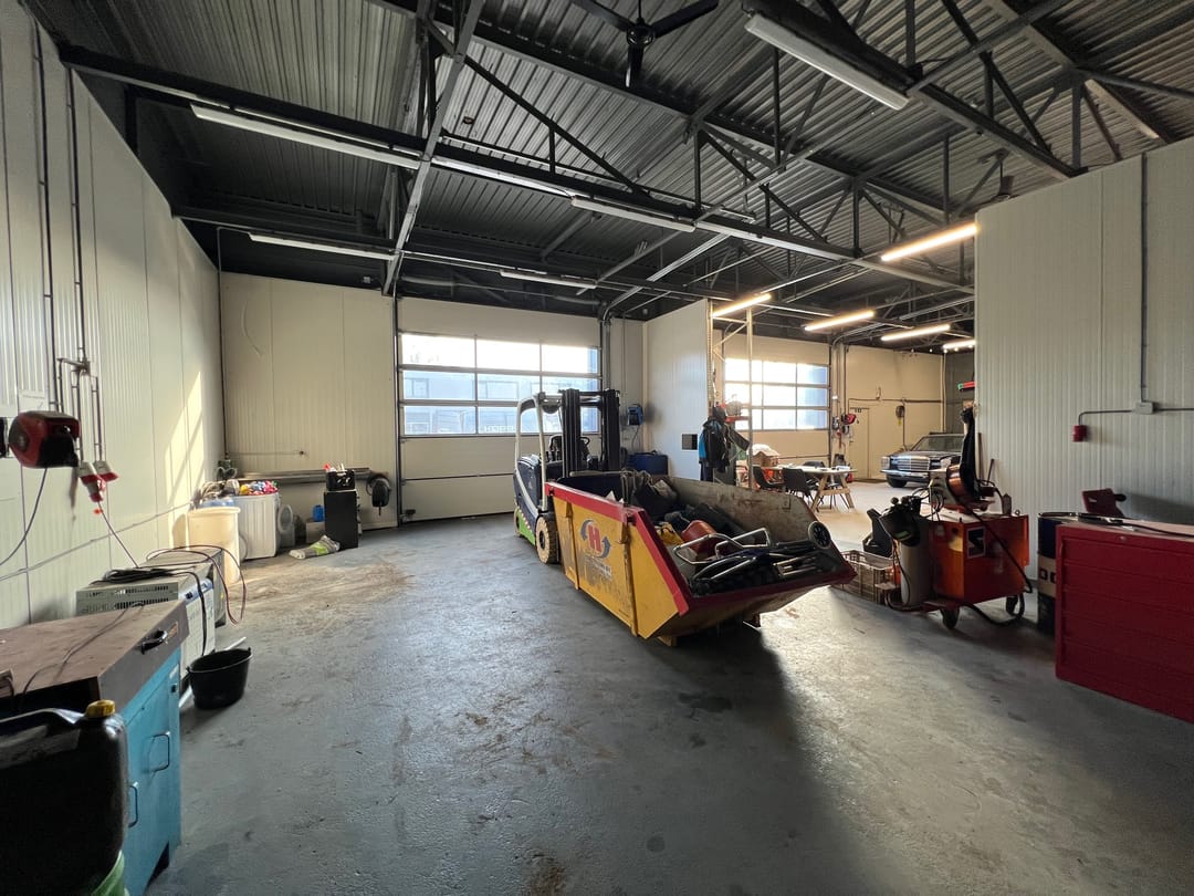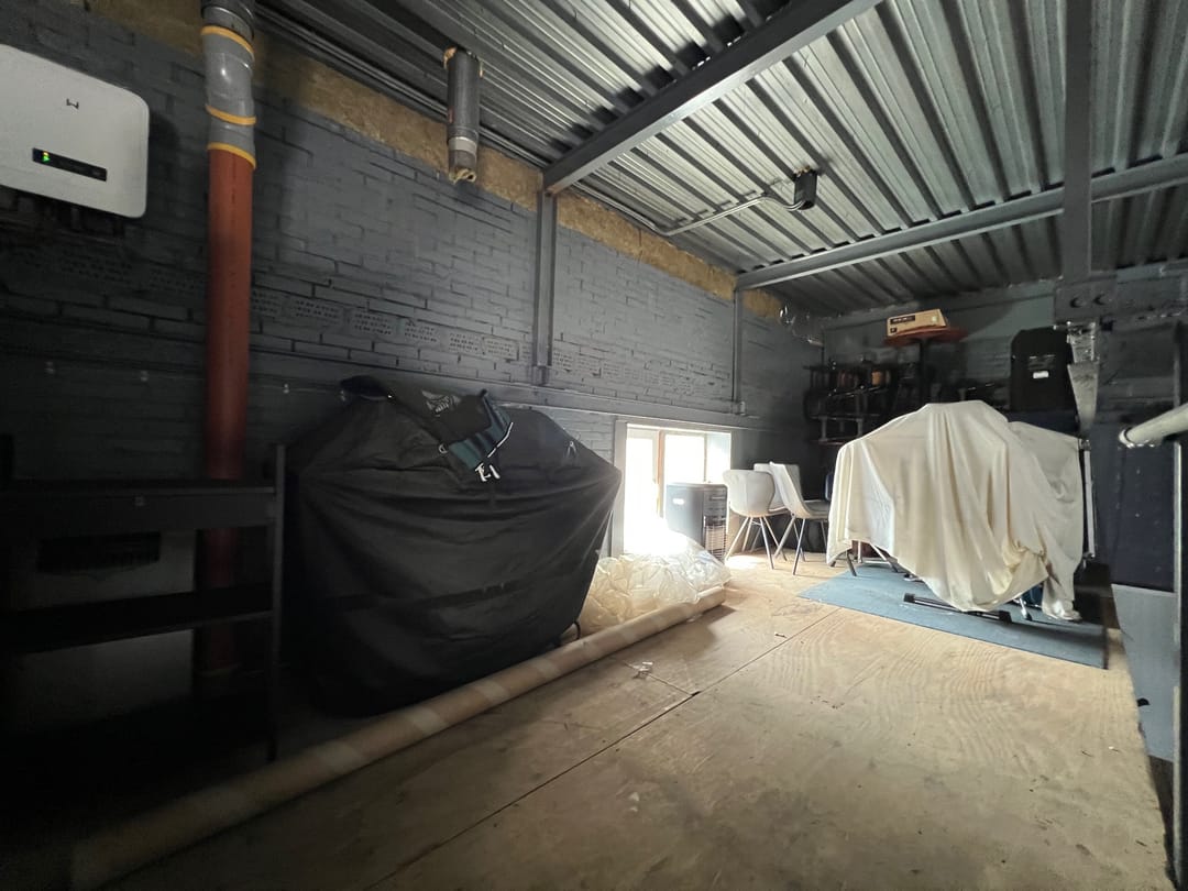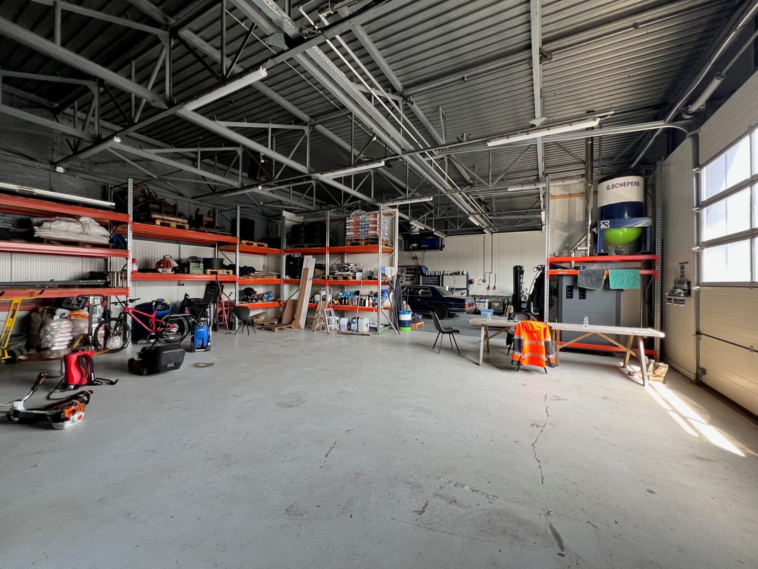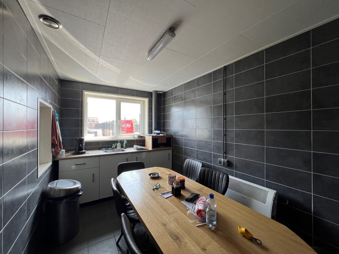 - kleine inpandige kantoorruimte/kantine van ca. 12 m² die o.a. is voorzien van een tegelvloer, een verlaagd plafond met een vrije hoogte van ca. 2,40 meter, directe daglichttoetreding, een pantry en elektrische verwarming;