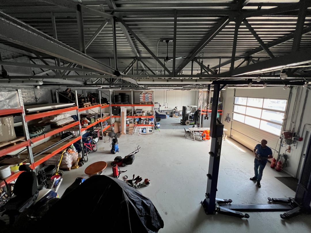 - entresolvloer voorzien van vaste trap (vrije hoogte onder de entresolvloer ca. 2,44 meter en vrije hoogte op de entresolvloer ca. 2,55 meter).