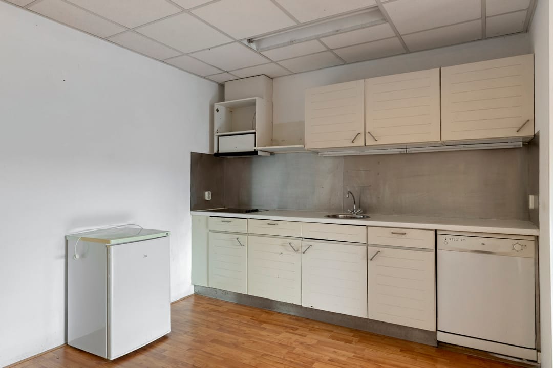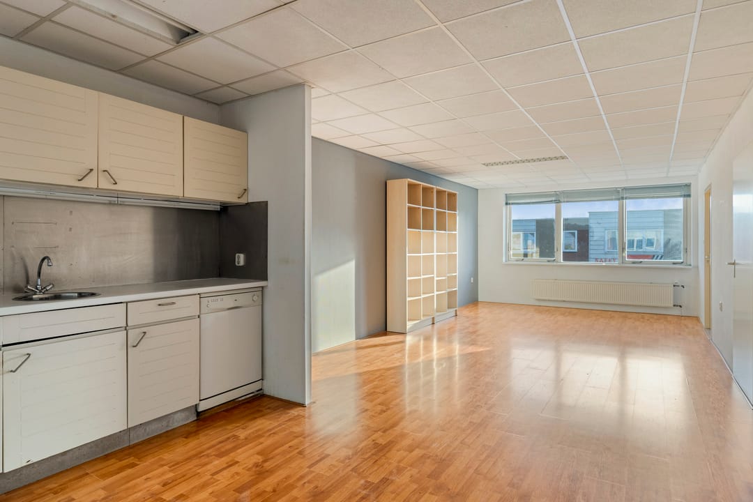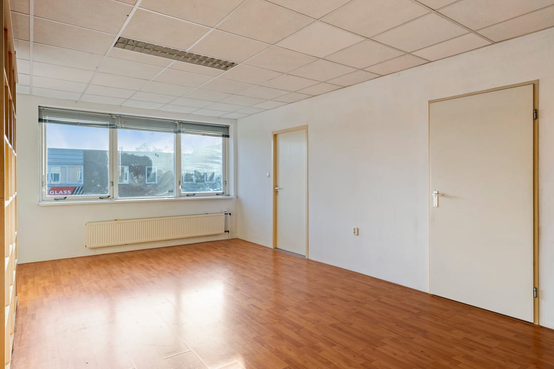 Op de eerste verdieping (ca. 88 m² VVO) bevinden zich meerdere kantoorruimten met veel daglicht dankzij de royale raampartijen. De afwerking met systeemplafonds, verlichting en laminaatvloer zorgt voor een nette, professionele uitstraling. Een pantry, overloop en extra toilet maken de verdieping compleet - ideaal voor administratie, overleg of een rustige werkplek.