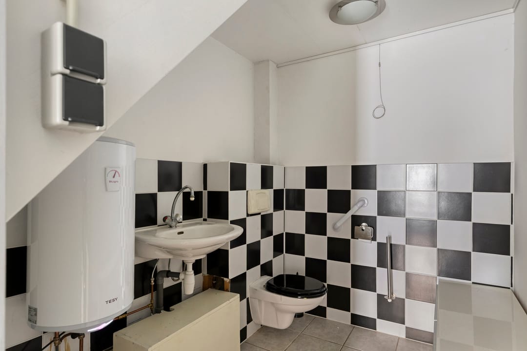 De begane grond (ca. 110 m² VVO) vormt het hart van het pand. Met een vrije hoogte van ca. 3,25 meter, een vloerbelasting van ca. 1.500 kg/m² en een handbediende overheaddeur van 3 x 3 meter is deze ruimte geschikt voor uiteenlopende activiteiten: van opslag en lichte productie tot werkplaats of distributiepunt. De afmetingen (6 m + 8 m breed, 14 m diep) maken de ruimte efficiënt en flexibel inzetbaar.