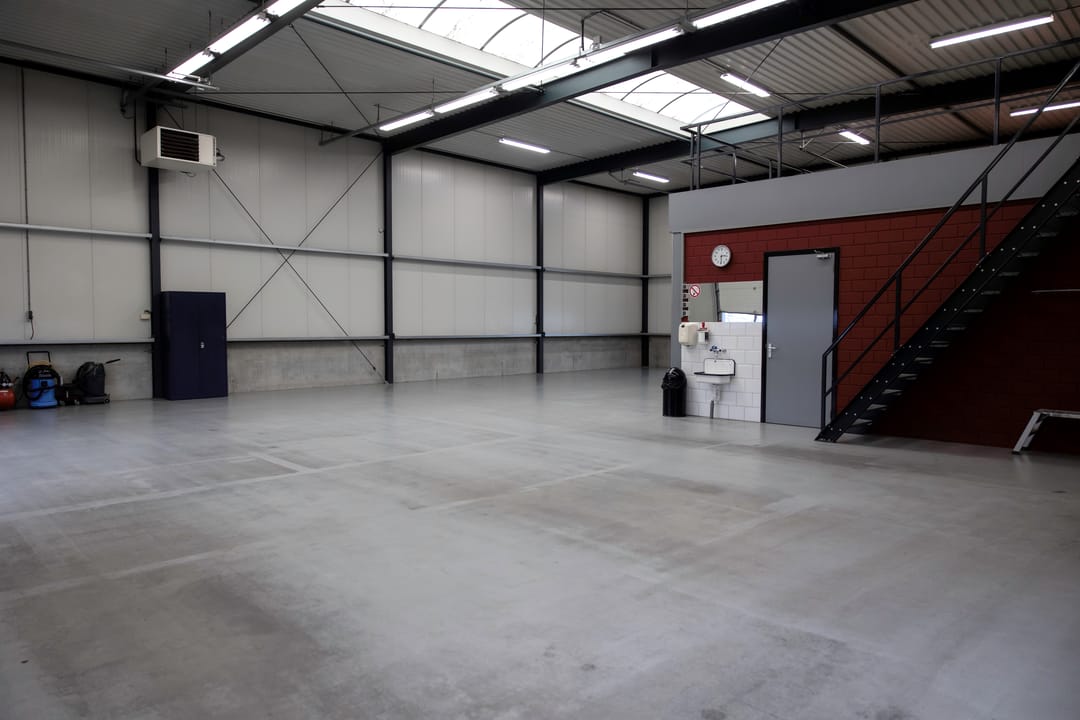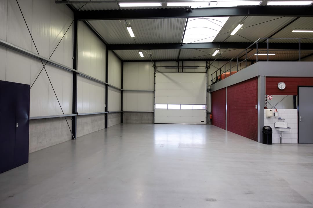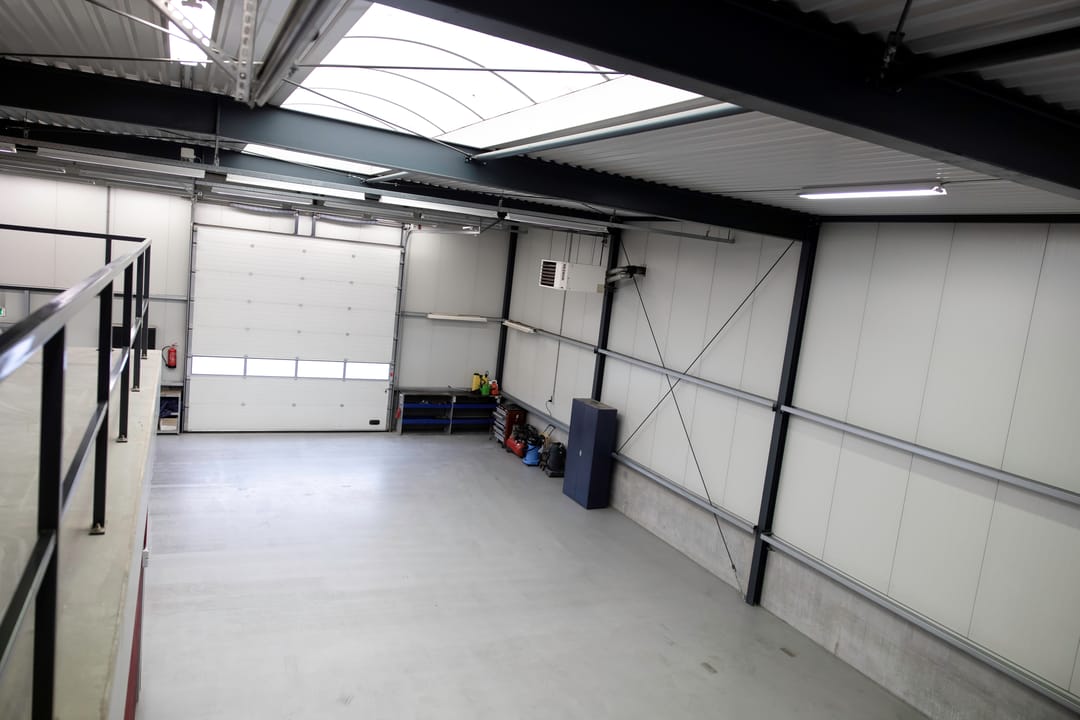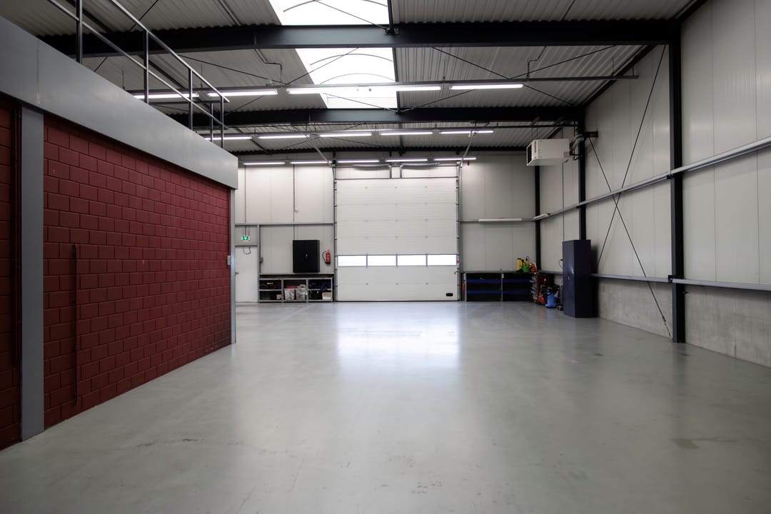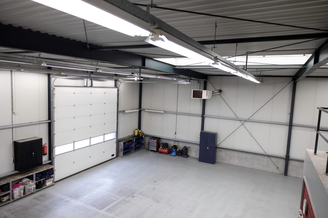 Het bedrijfspand beschikt over 3 overheaddeuren aan voor- en achterzijde.