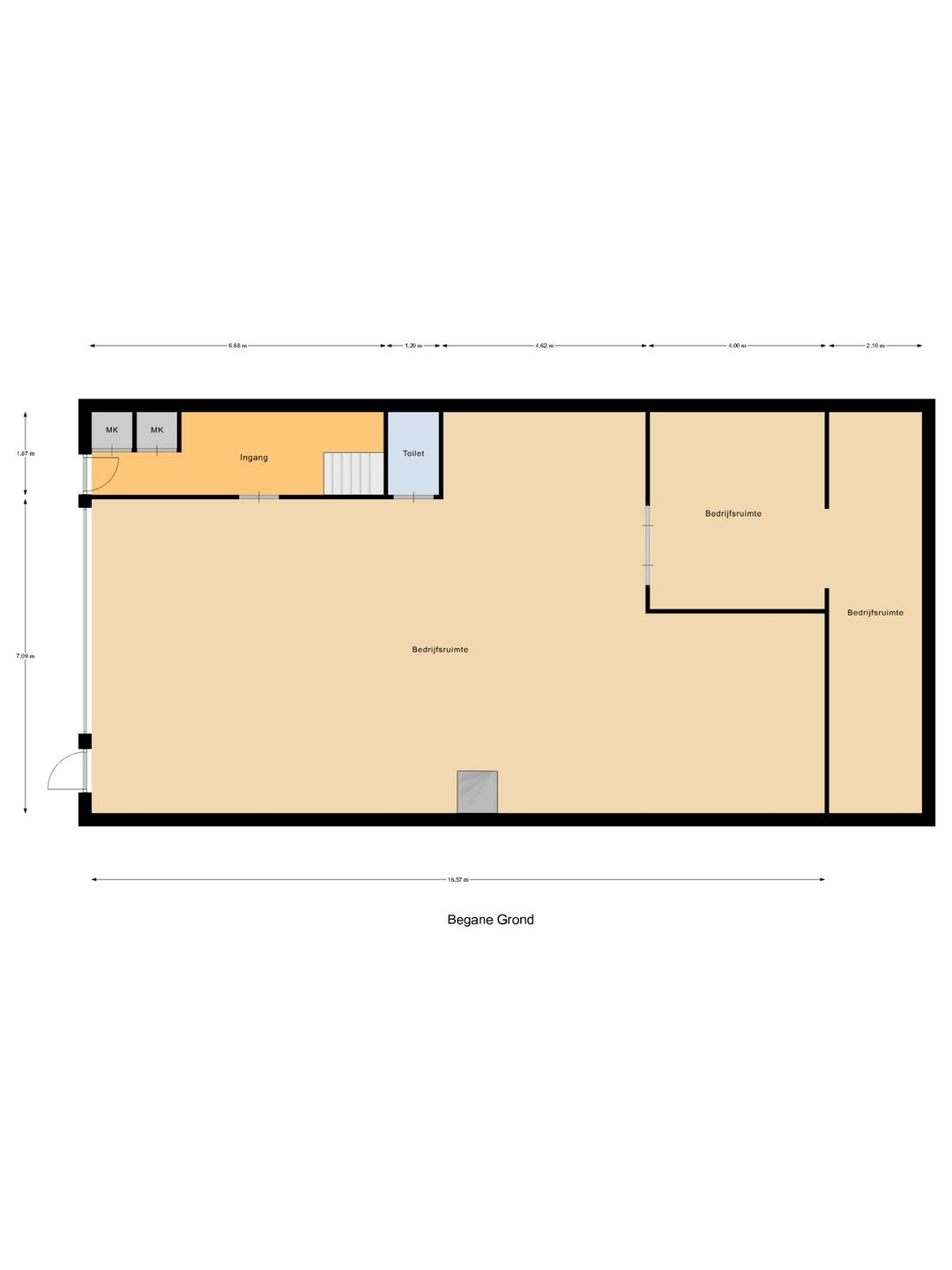 Begane grond: ca. 171 m2 VVO bedrijfsruimte, waarvan ca. 18 m2 een aangebouwde container betreft.