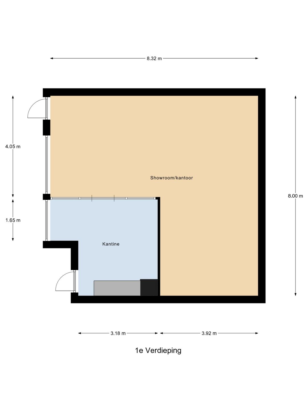 1e verdieping: ca. 64 m2 kantine/showroom.