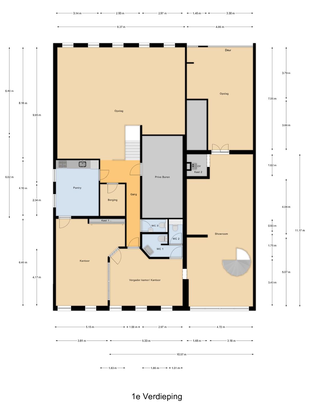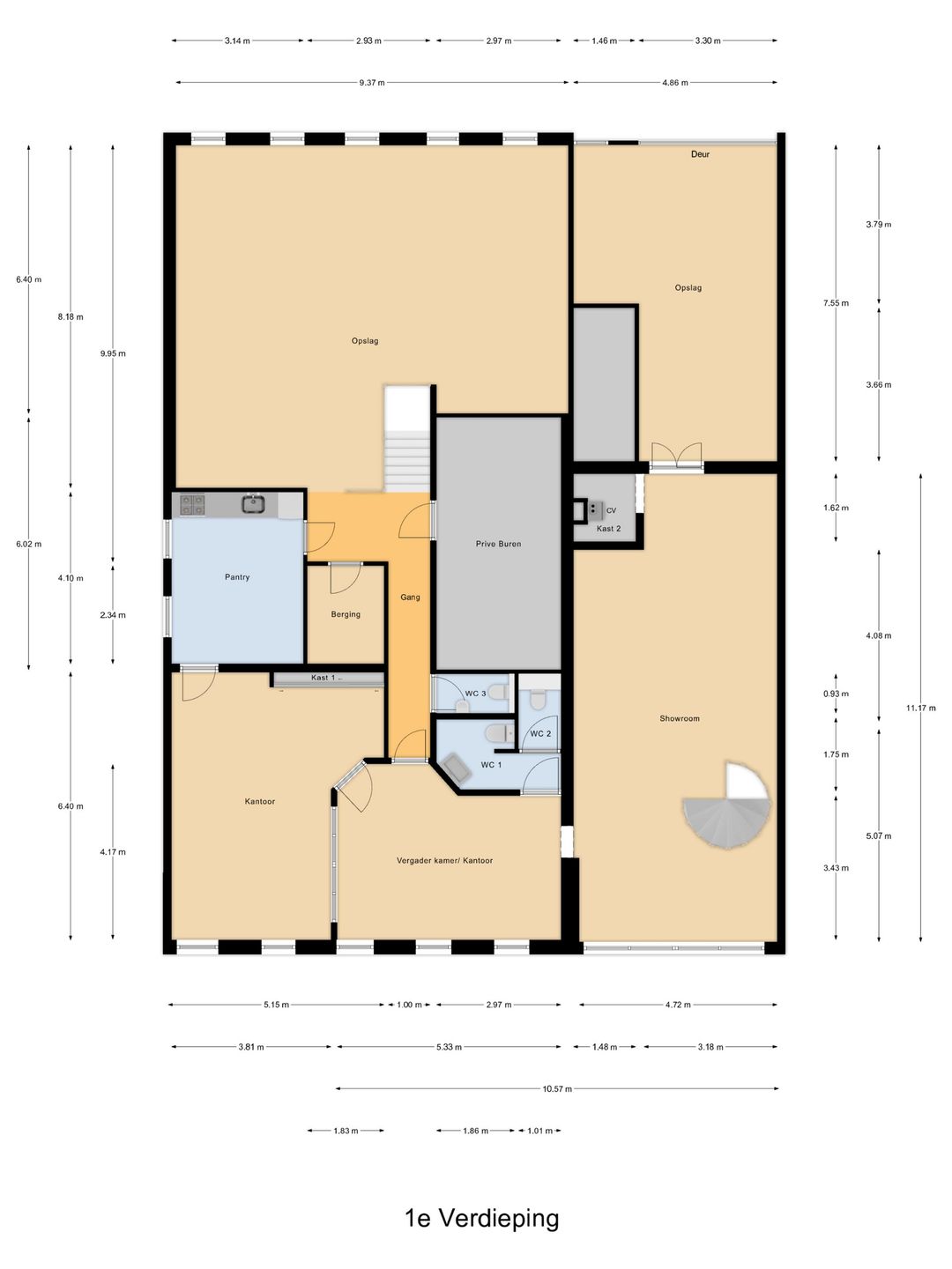 Kantoor/showroomruimte (1e verdieping):