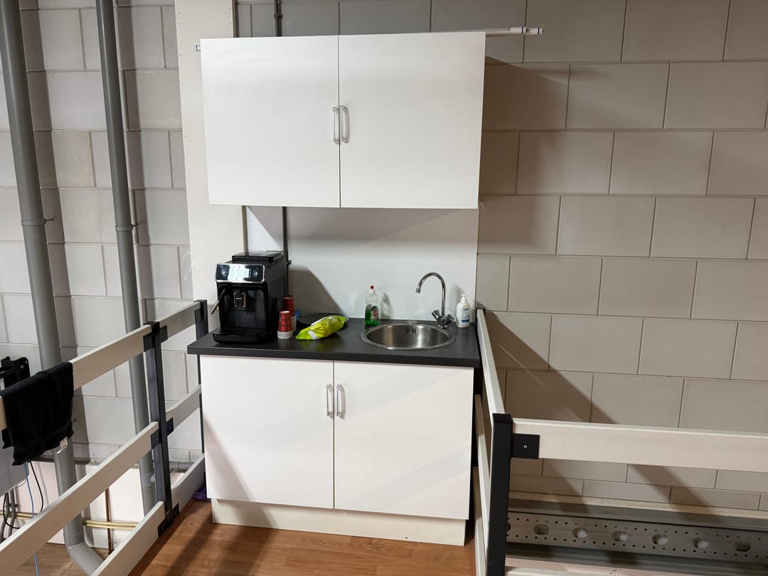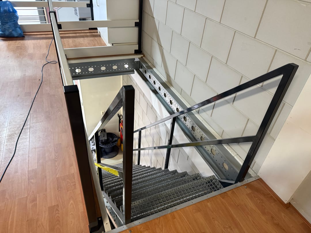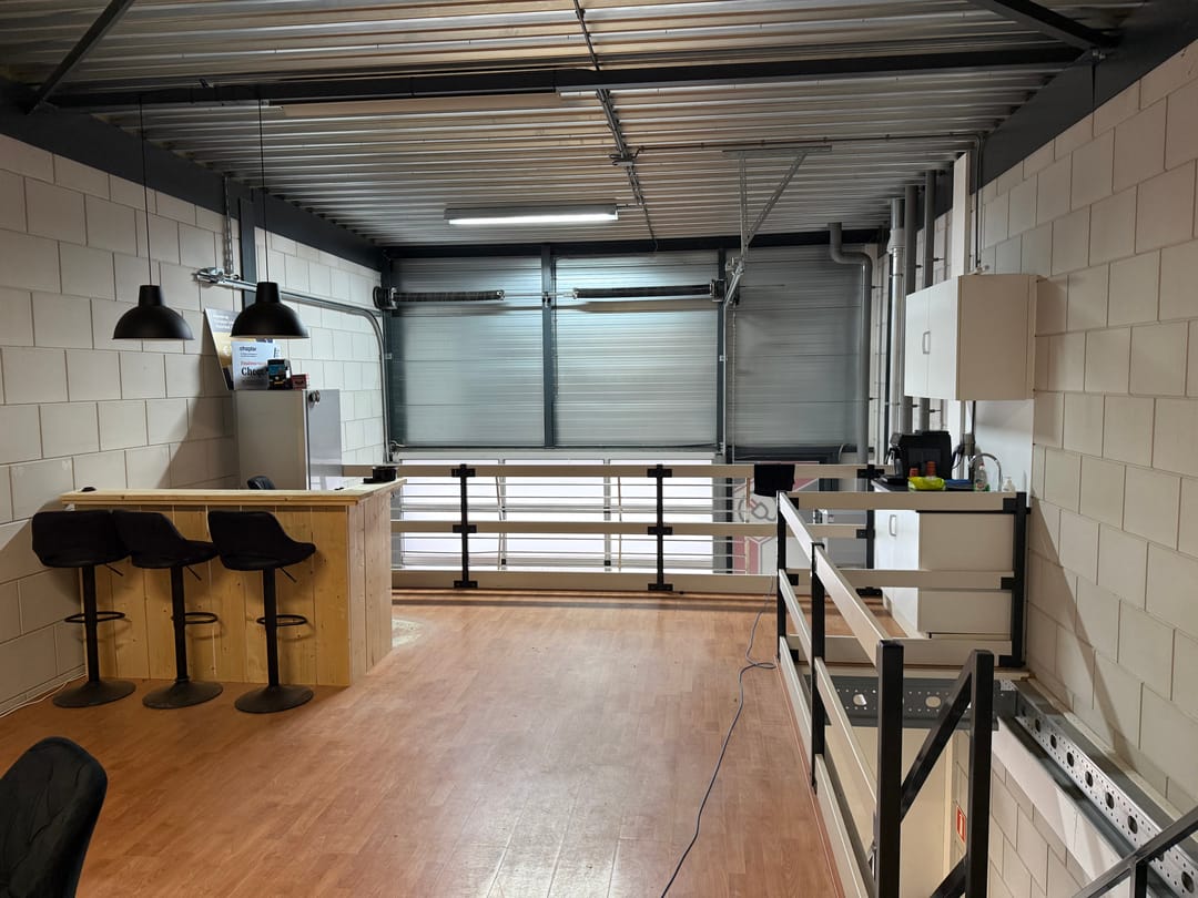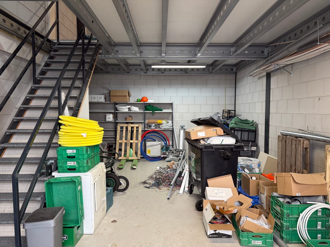 - solide entresolvloer (systeemvloer) met stalen trapopgang en valbeveiliging, maximale vloerbelasting 500 kg/m²;