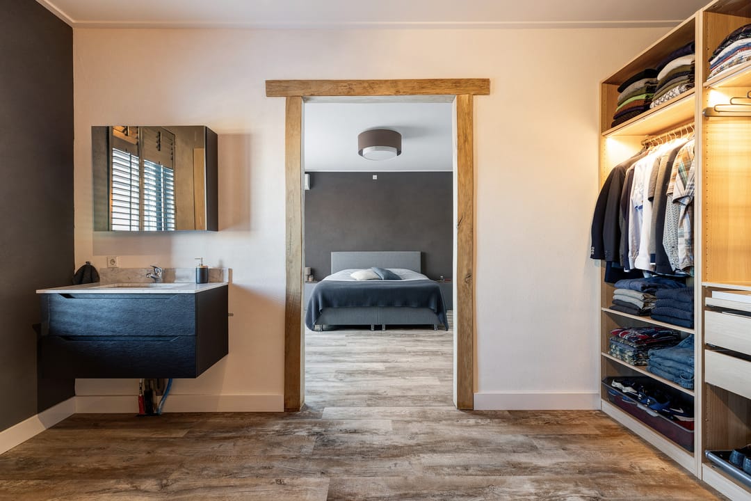 • Toegang tot ruime inloopkast met wastafelmeubel