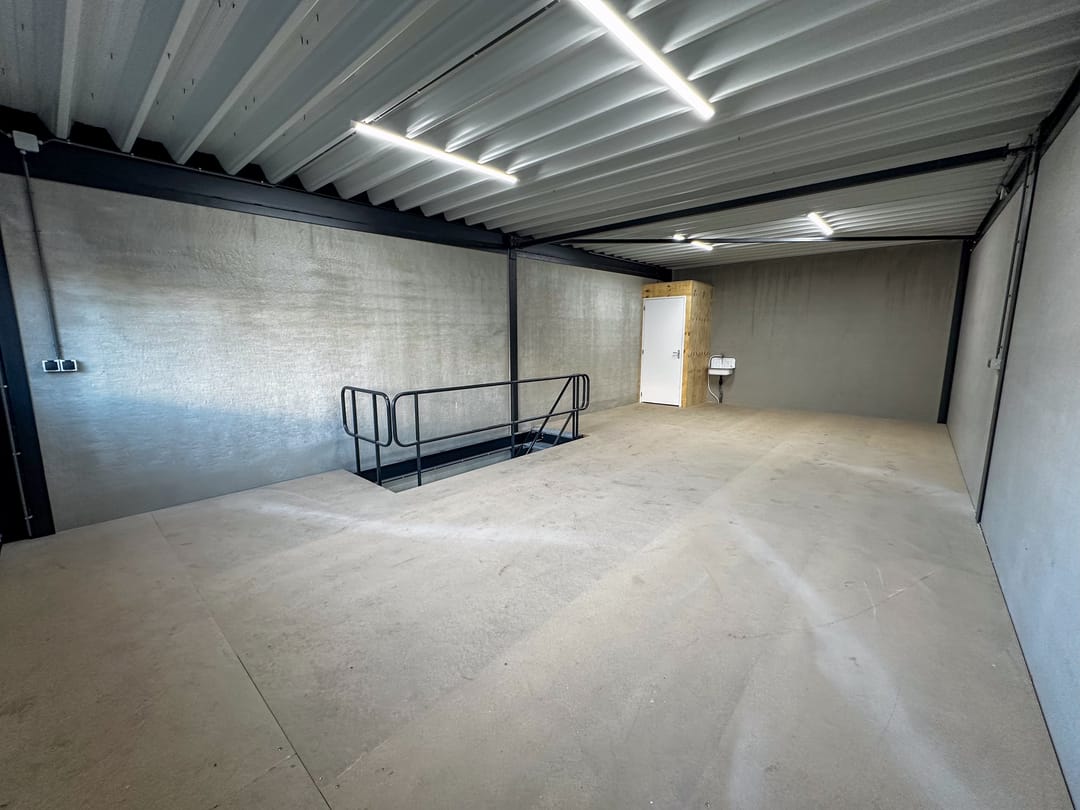 De bedrijfsunit is gebouwd met een stalen constructie en is volledig hoogwaardig geïsoleerd met beton- en sandwichpanelen. Verder is de unit voorzien van: