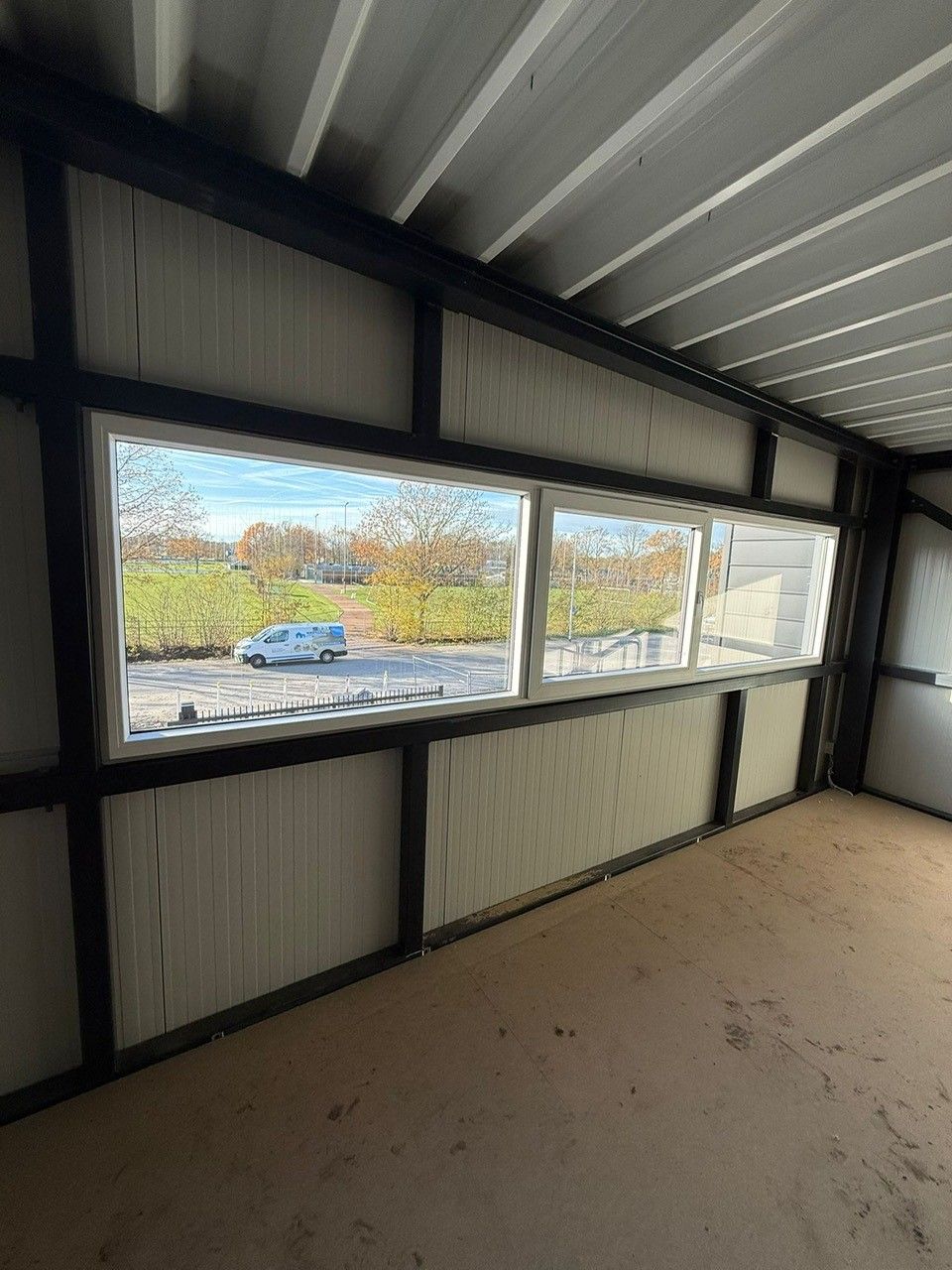 - Gedeeltelijk afgewerkt met geisoleerde sandwichpanelen