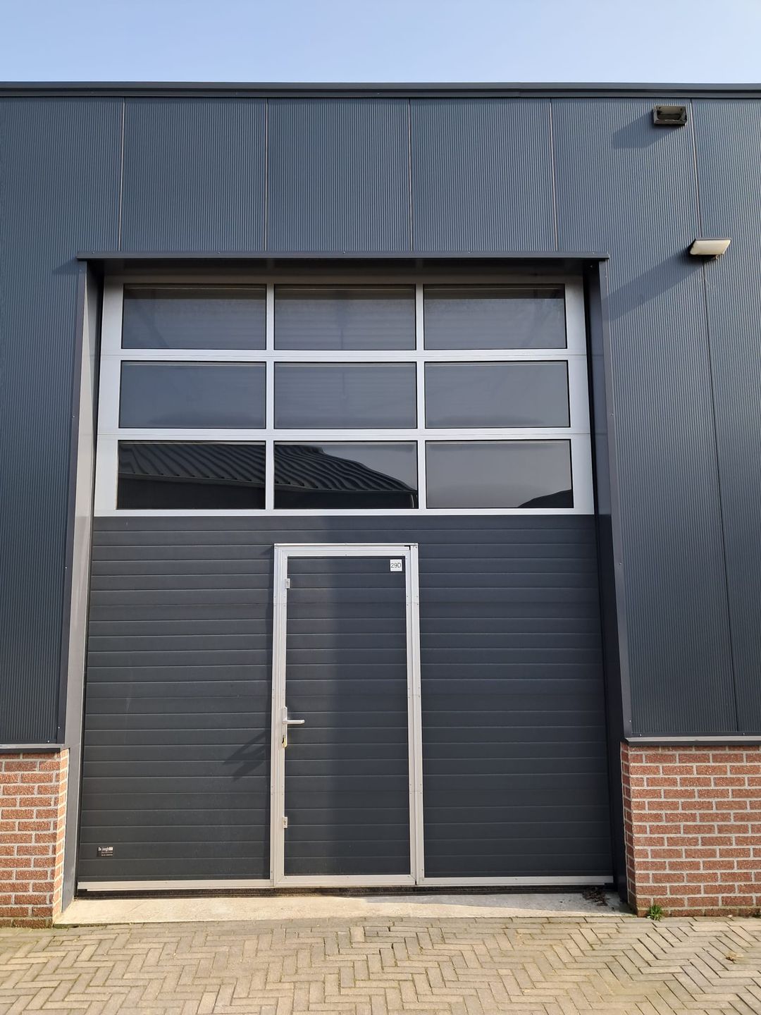 - Elektrische overheaddeur (4 X 4) met loopdeur;