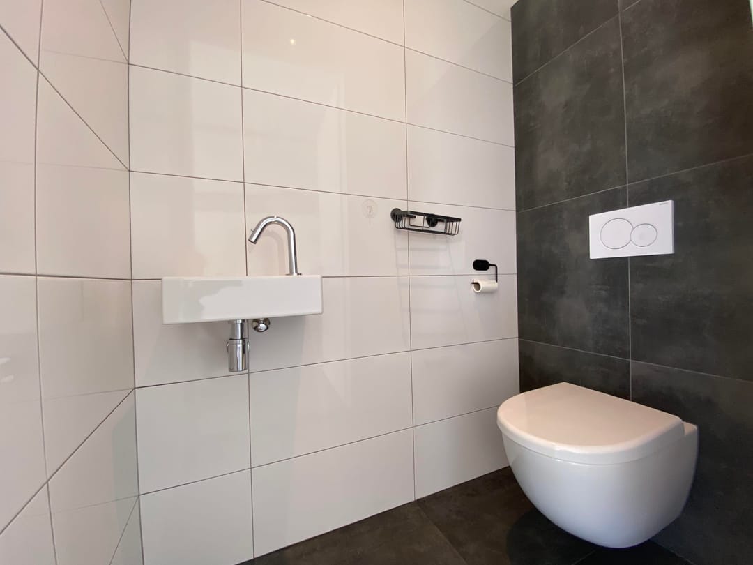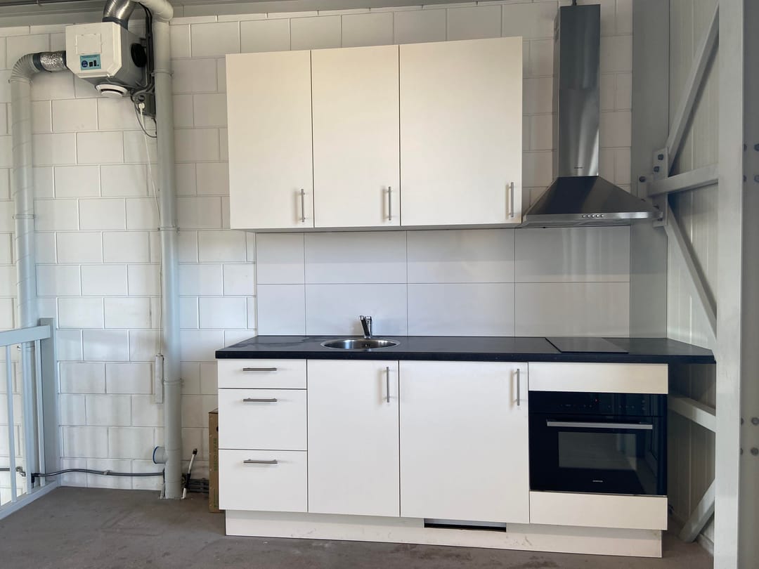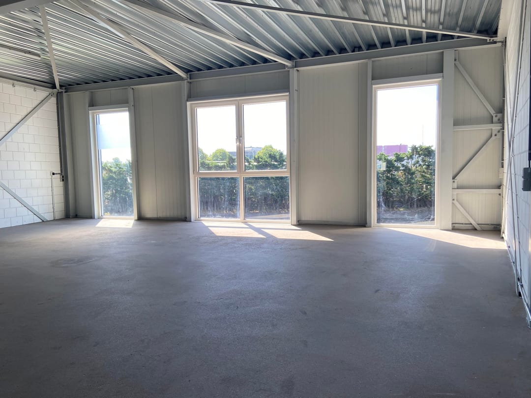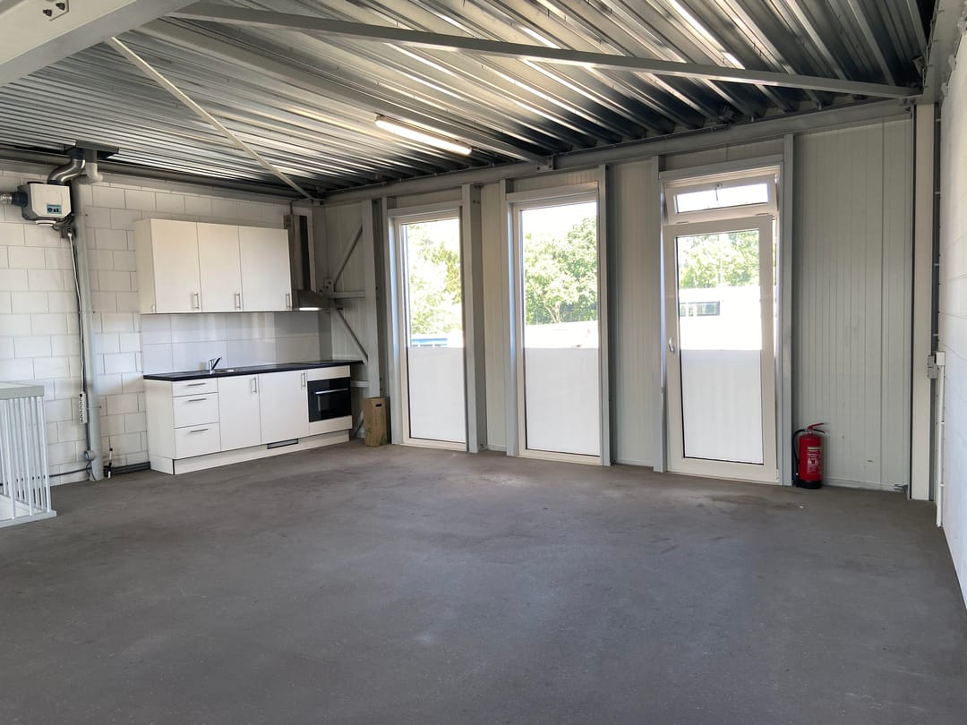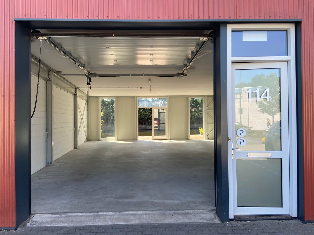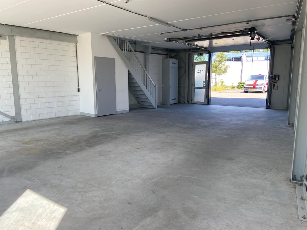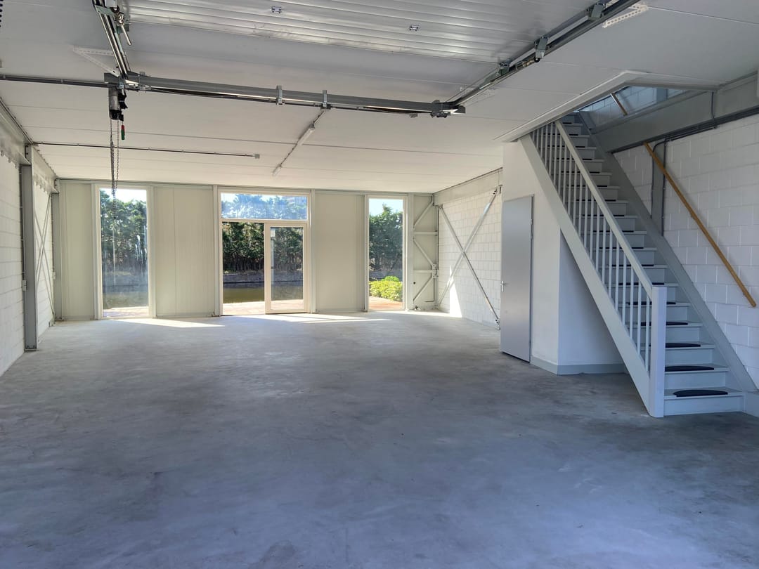 De bedrijfsruimte beschikt over een automatische overheaddeur en de begane grond is voorzien van een toilet met fonteintje. Via de trap kan de 1ste etage met keuken worden bereikt.