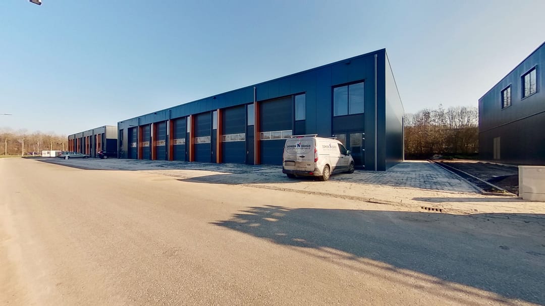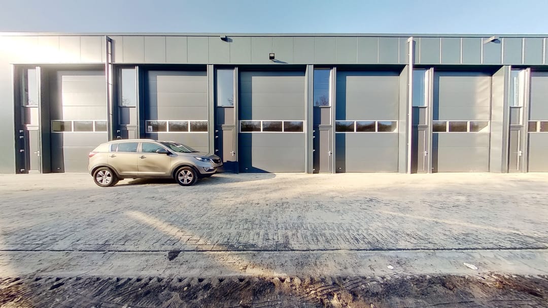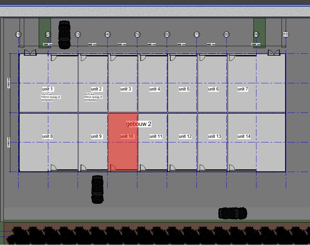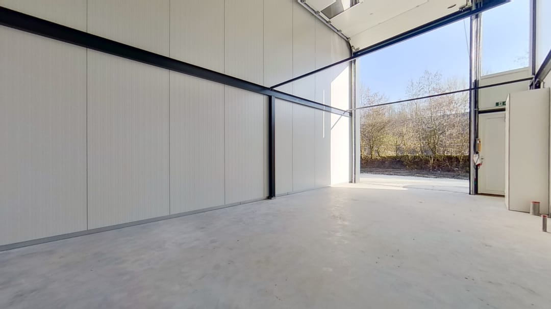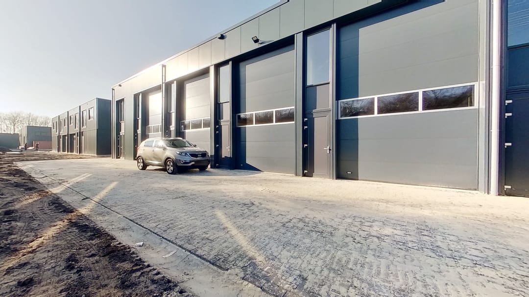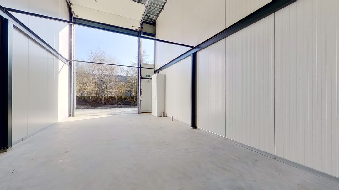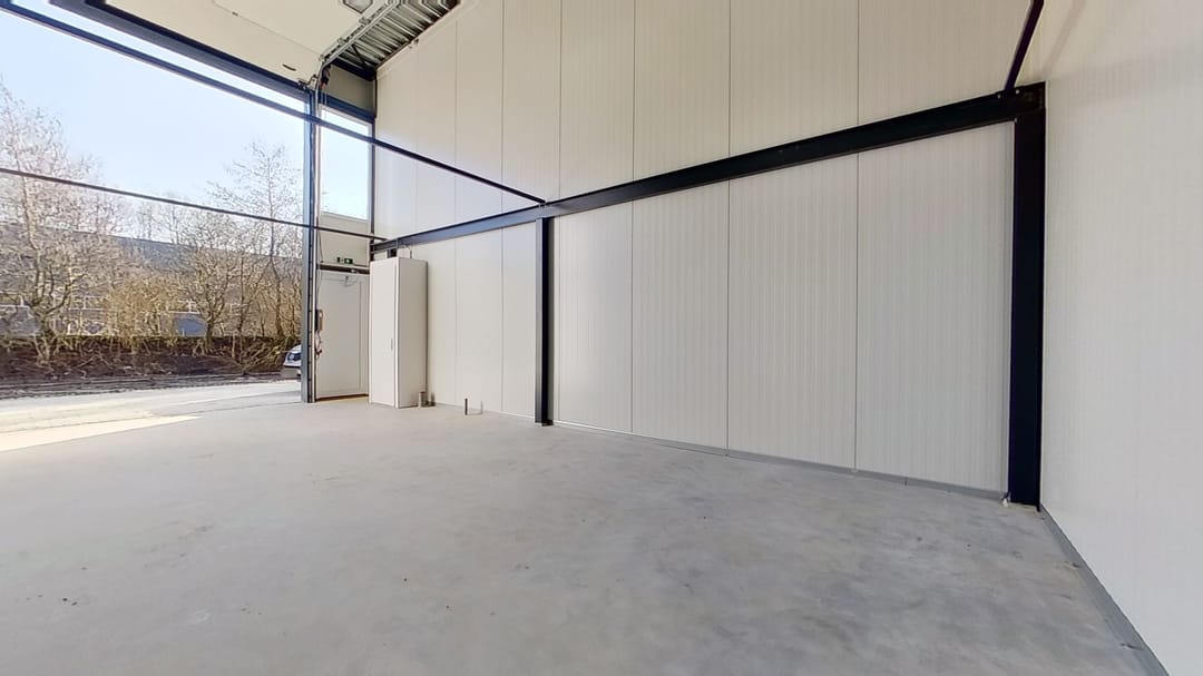 • overheaddeur (5,5 m vrije doorrij hoogte) met elektrische bediening