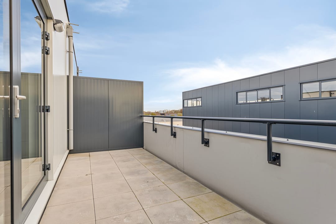 • Openslaande deuren naar het dakterras (voorzien van betontegels)