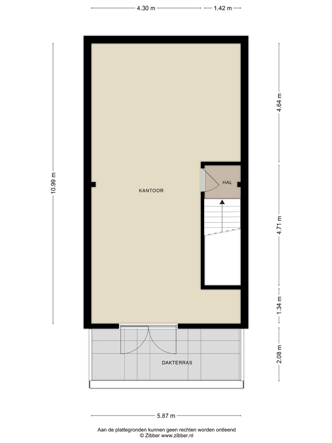 • 2e verdieping: ca. 67 m² kantoorruimte met ca. 13 m² dakterras