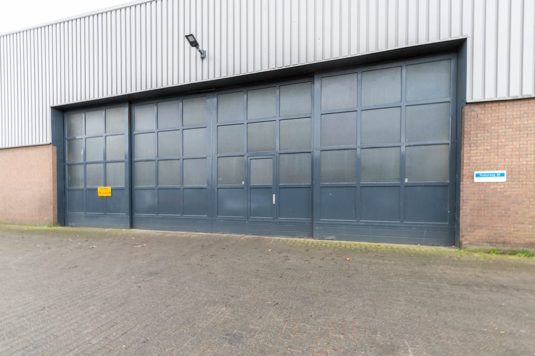 De hal beschikt over een ruime vrije hoogte (minimaal 5.56m), grote schuifdeuren aan de voorzijde en een betonvloer die geschikt is voor zware belasting.