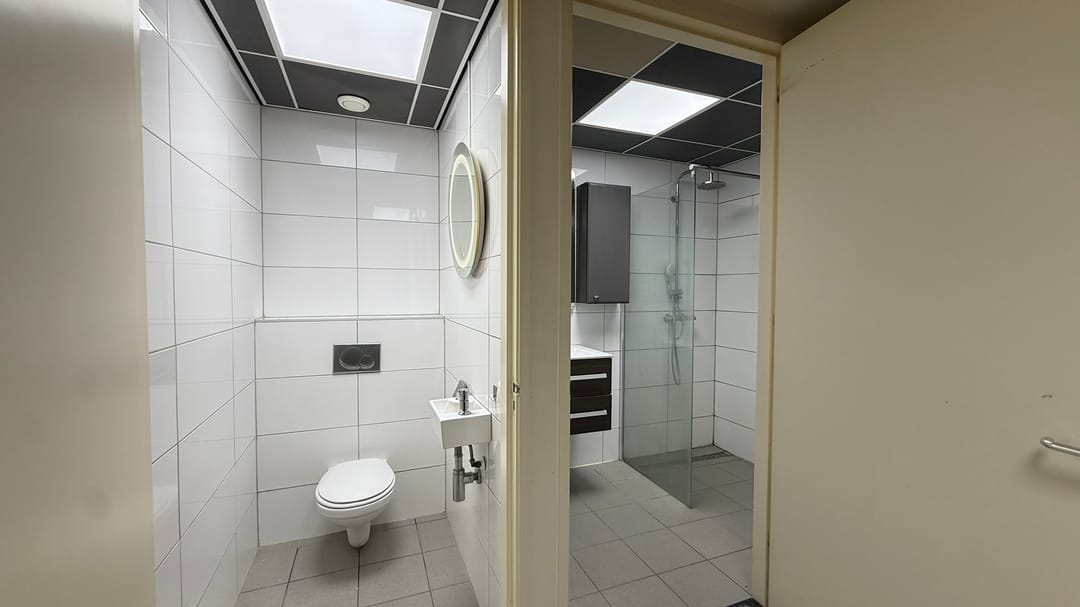 Het bedrijfsobject bestaat uit een ruime bedrijfsruimte van circa 212 m², verdeeld over circa 110 m² op de begane grond en circa 102 m² op de eerste verdieping.