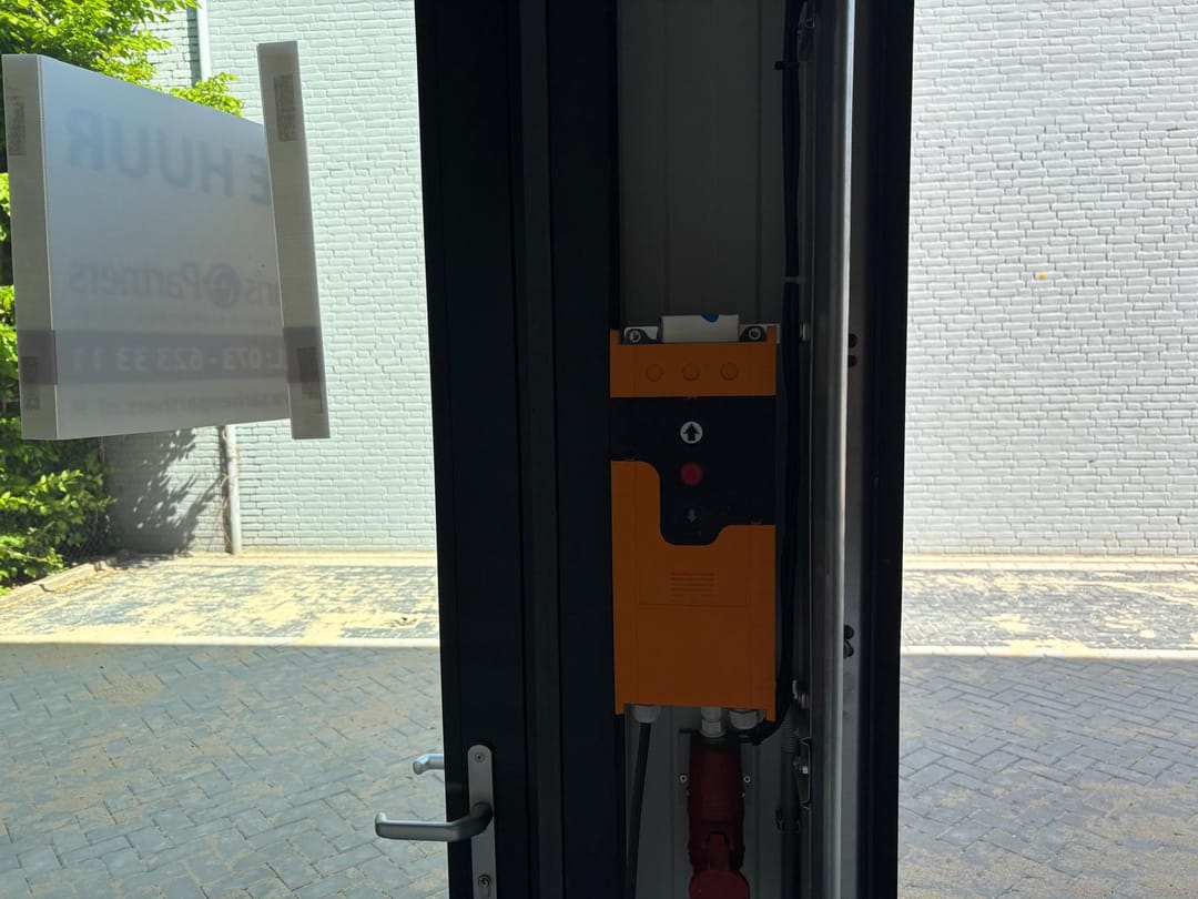 - Overheaddeur met een hoogte van 3,5 meter en met aparte loopdeur