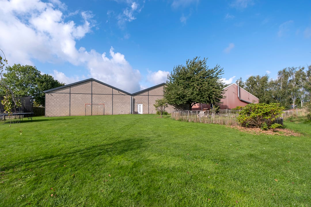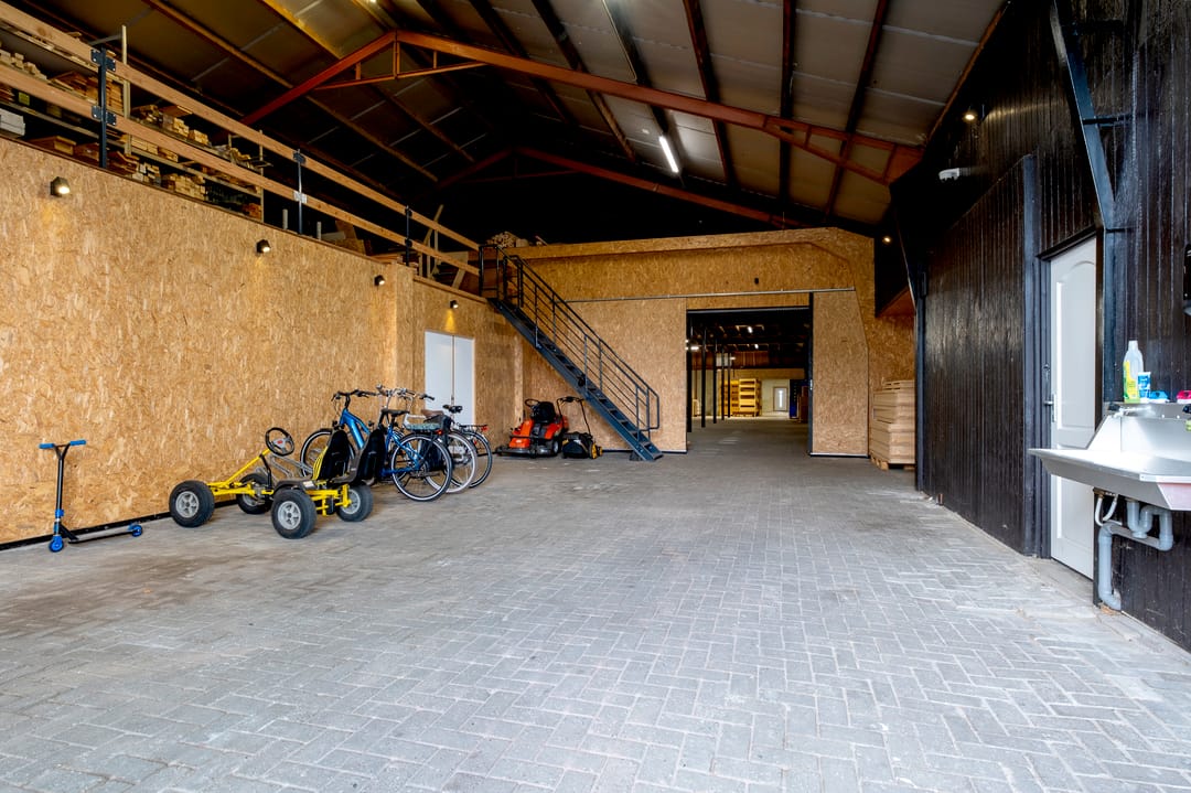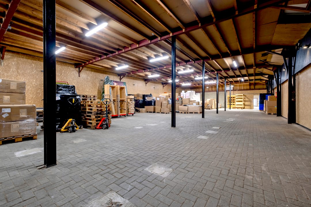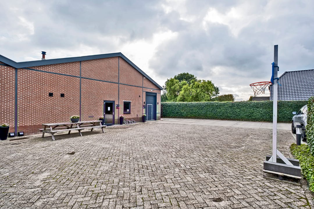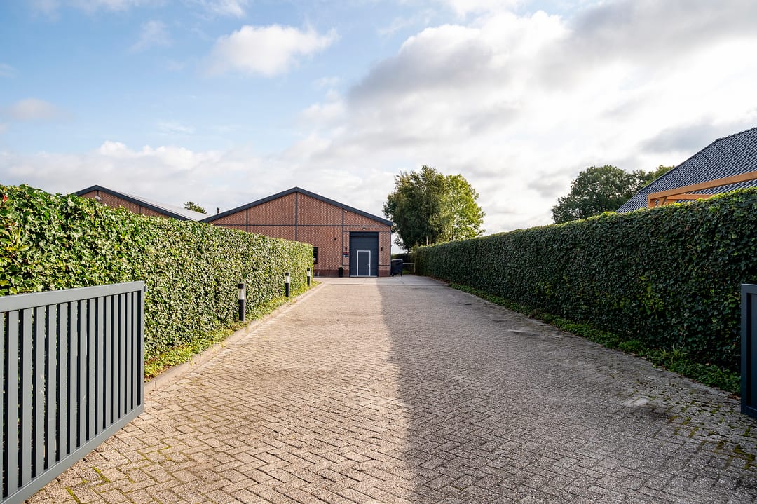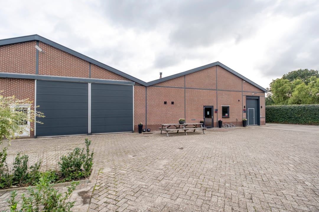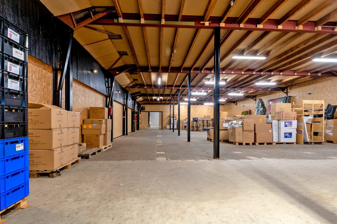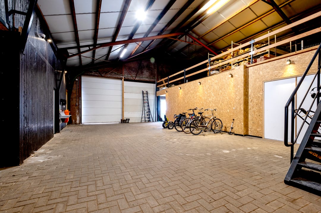 Achter de tweede woning bevindt zich de grote bedrijfshal (de begane grond is circa 1.798m² en de verdieping is circa 870m²). De bedrijfsruimte biedt volop mogelijkheden voor ondernemen aan huis.