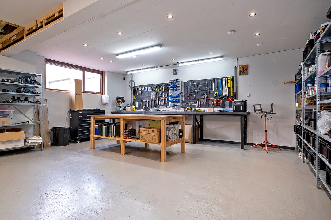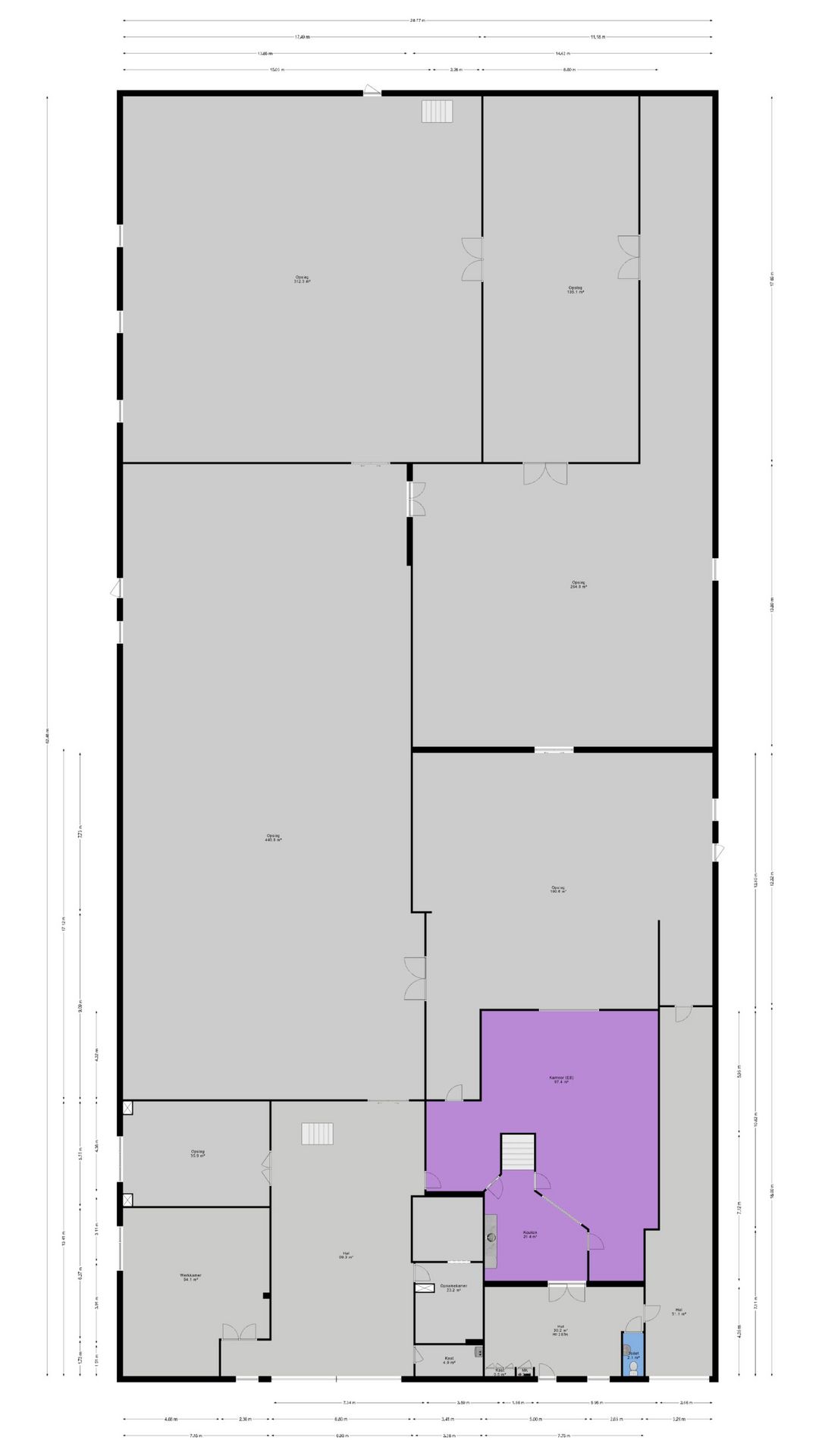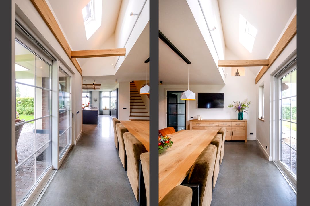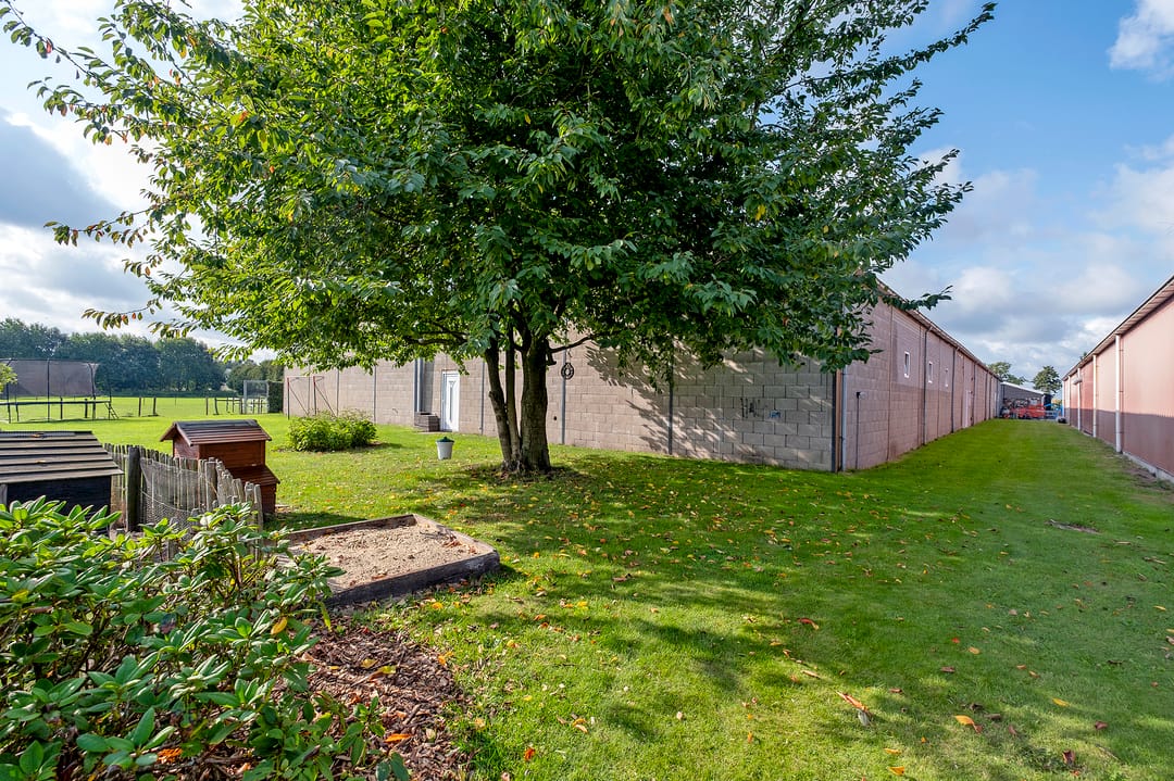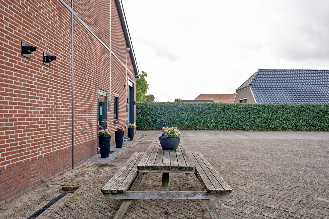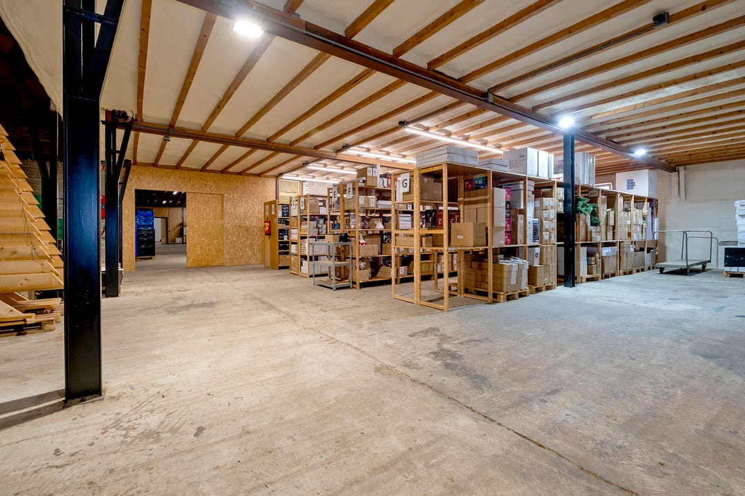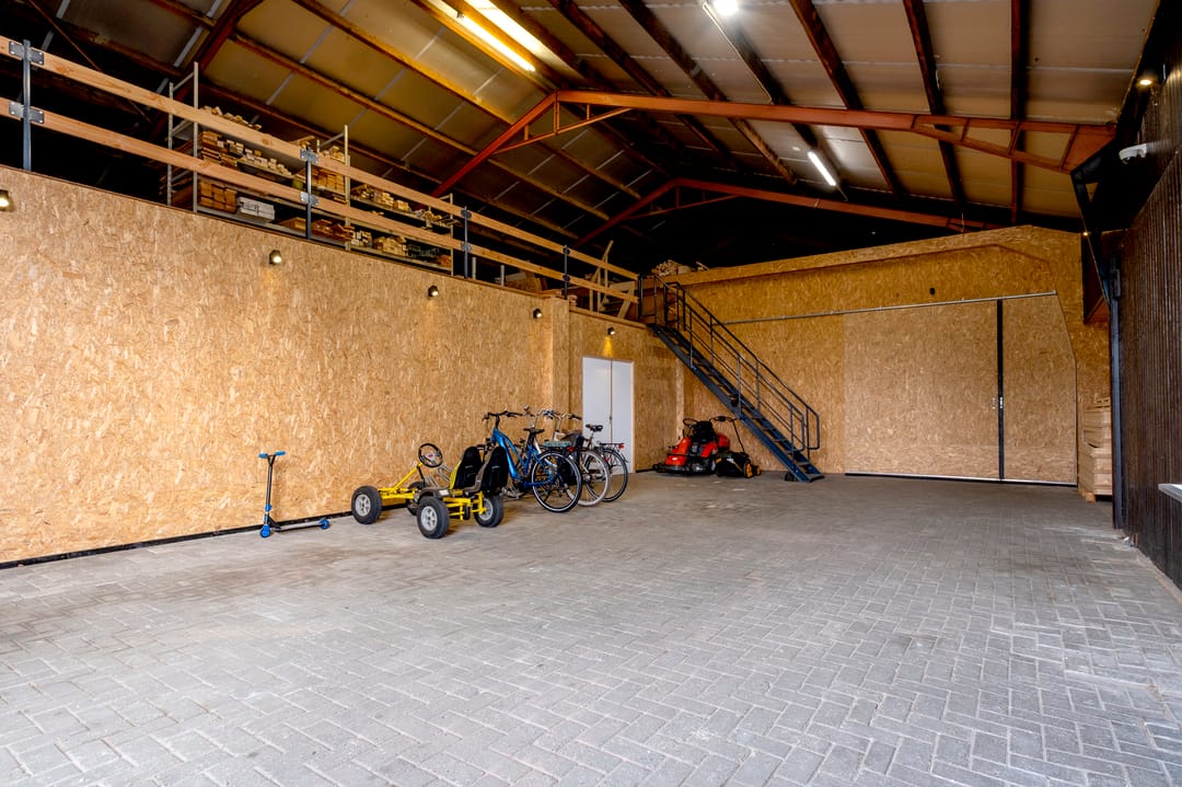 Achter de tweede woning bevindt zich de grote bedrijfshal (de begane grond is circa 1.798m² en de verdieping is circa 870m²). De bedrijfsruimte biedt volop mogelijkheden voor ondernemen aan huis.