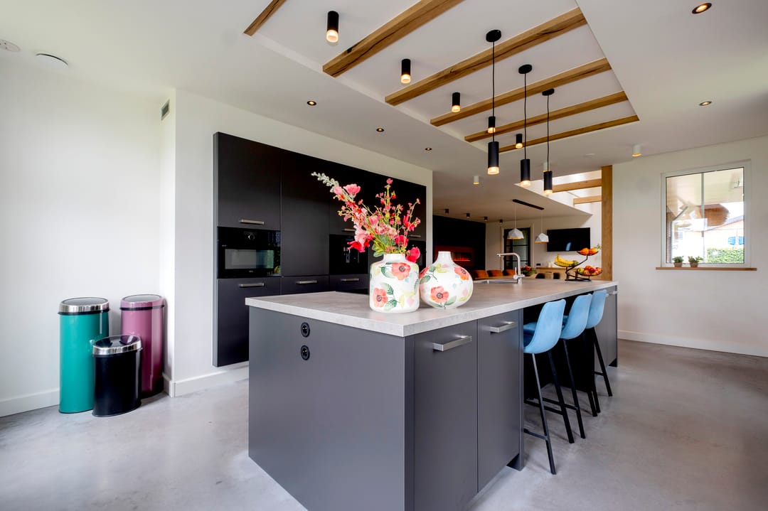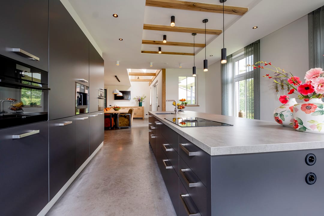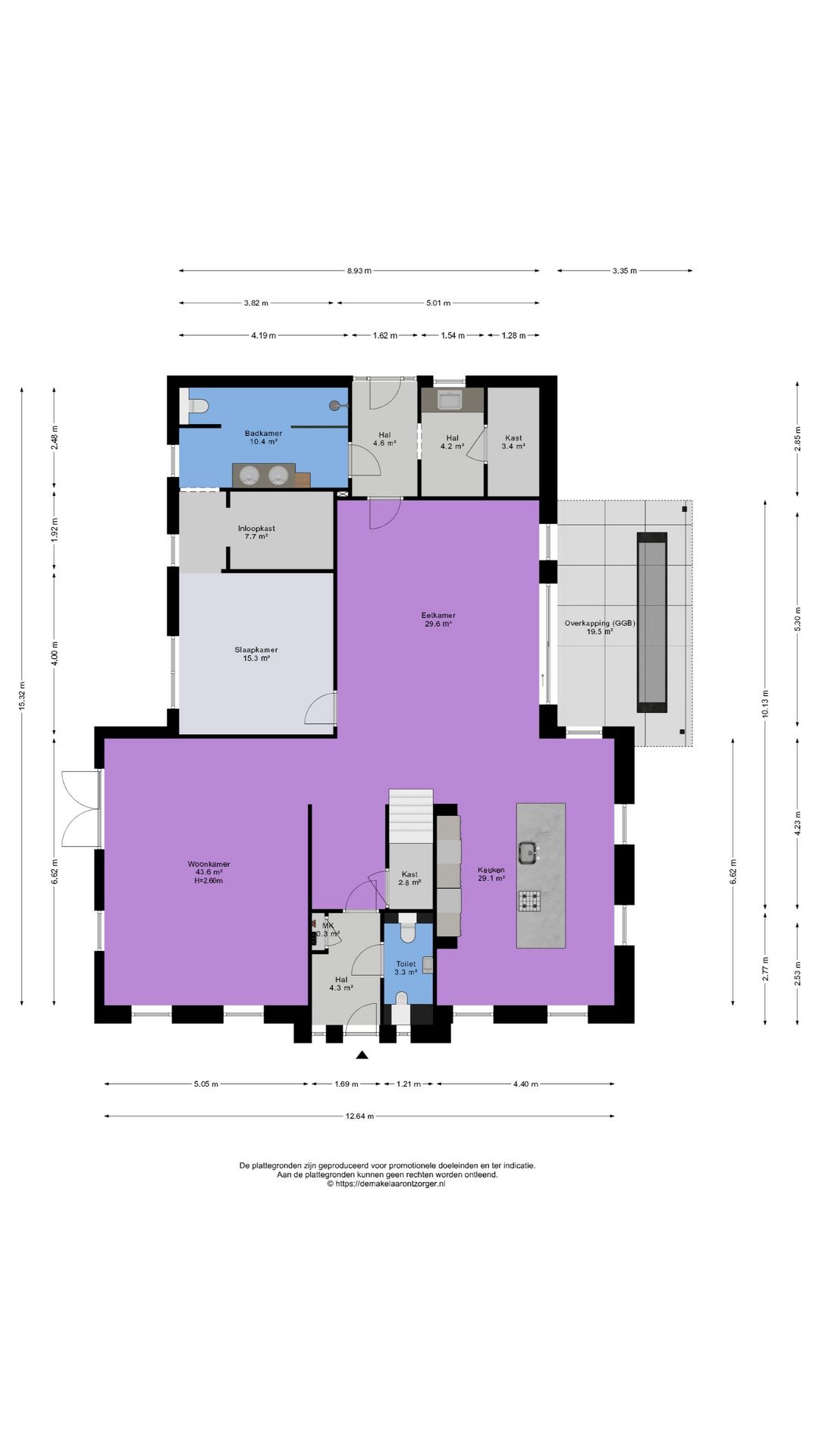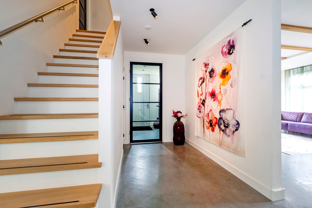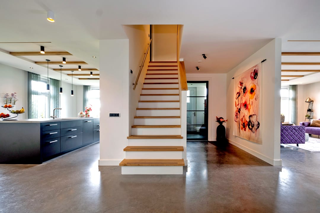 Entree/hal, toilet met urinoir, provisiekast, royale living met veel lichtinval, sfeer en vrij uitzicht, slaapkamer met walk-in-closet en badkamer ensuite (voorzien van inloopdouche, toilet en dubbele wastafel), woonkeuken met een spoel- en kookeiland (voorzien van hoogwaardige inbouwapparatuur waaronder Quooker, stoomoven, koffiemachine, combimagnetron, inductiekookplaat met geïntegreerde afzuiging en vaatwasser), bijkeuken, stookruimte en via de woonkeuken een schuifpui richting de overkapping.