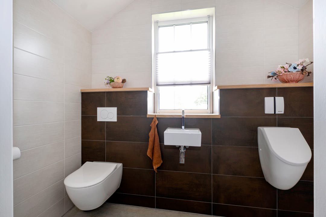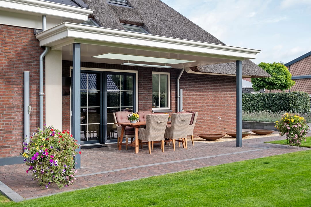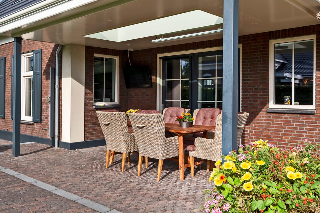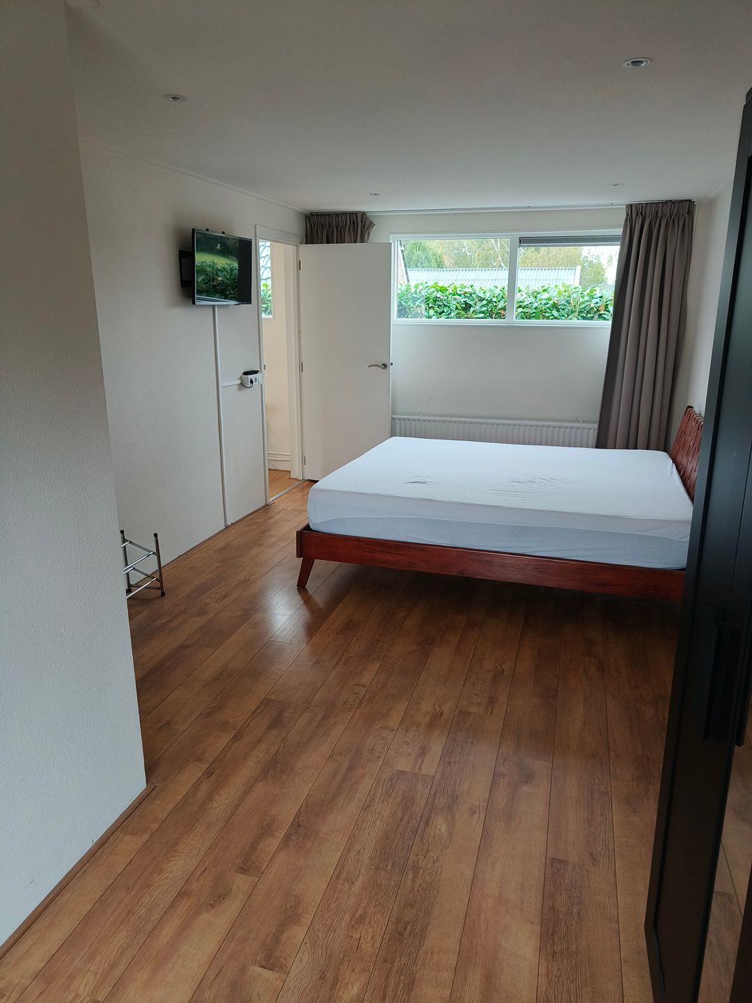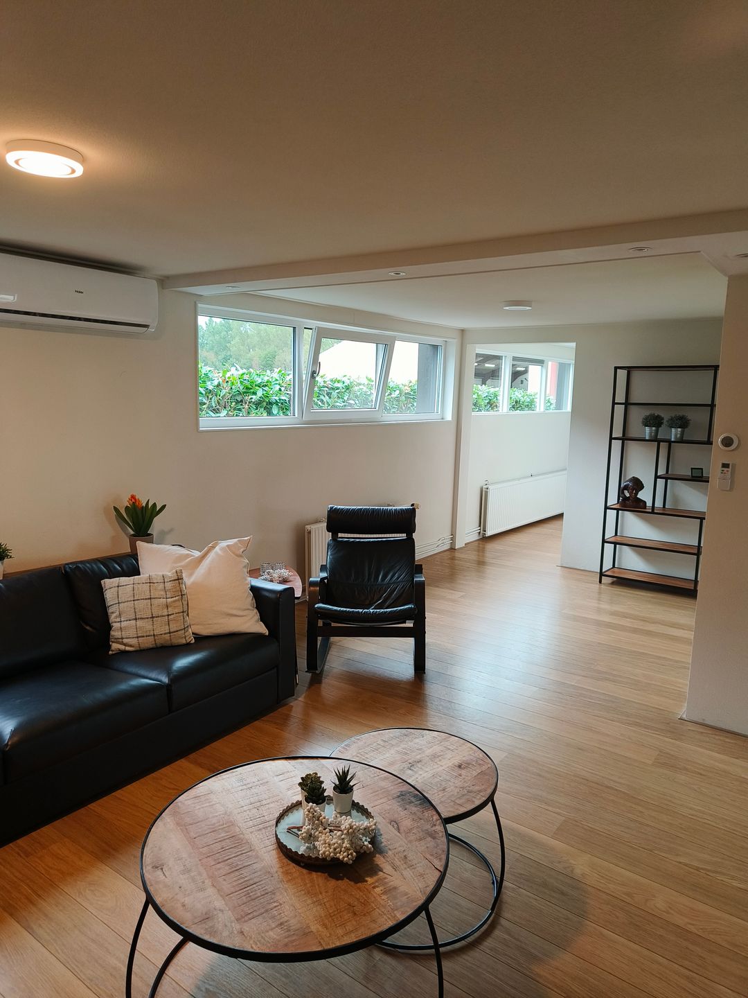 Achter de villa bevindt zich een modern chalet, volledig gerenoveerd in 2021 en eveneens levensloopbestendig. Perfect geschikt als mantelzorgwoning of gastenverblijf.