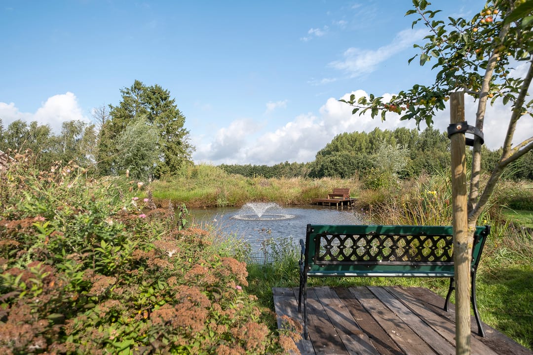 De kavel van 6.450 m² is prachtig aangelegd met een schitterende parkachtige tuin, voorzien van een grote vijverpartij. Hier geniet u dagelijks van rust, privacy en het buitenleven. Ook is er voldoende parkeergelegenheid voor maar liefst 9 auto’s op eigen terrein.