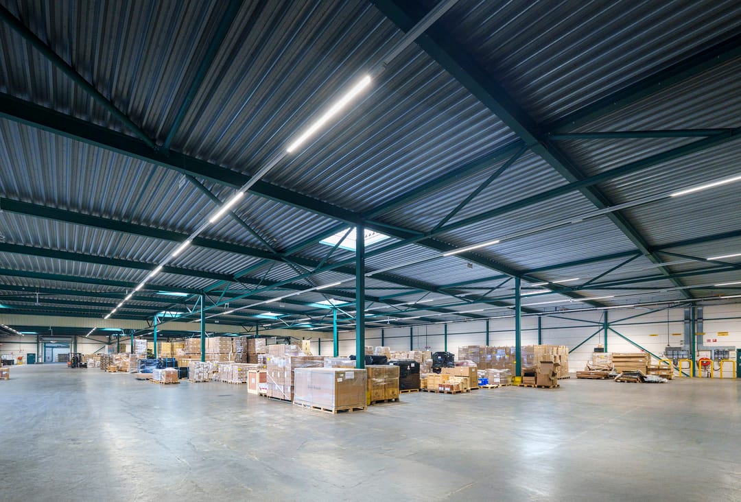 · LED-verlichting, gemiddeld lichtniveau 200 lux (gemeten op 1 meter boven de vloer in een lege loods);