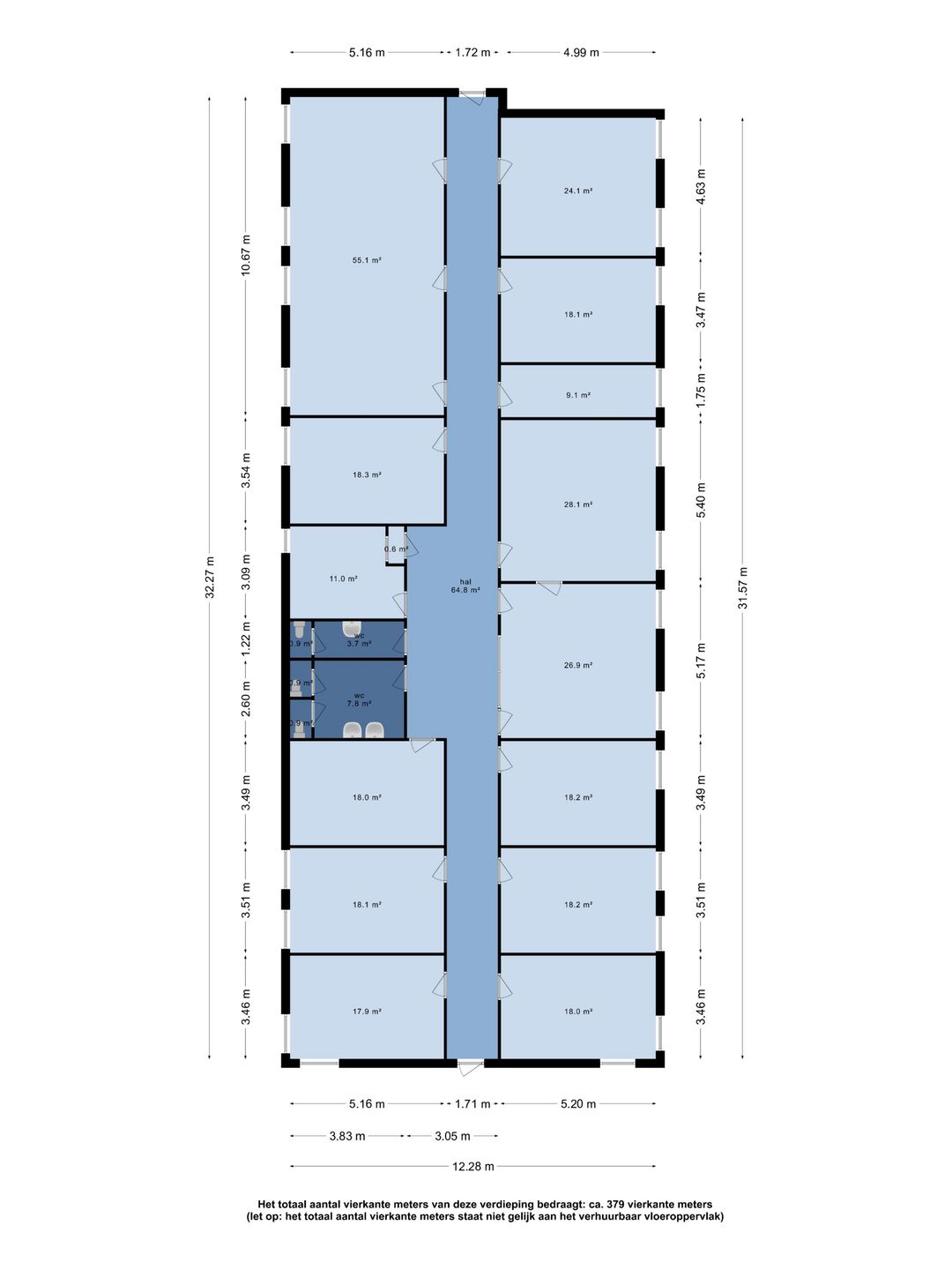 De oppervlakten zijn zo zorgvuldig mogelijk vastgesteld, doch mogen niet worden aangemerkt als zuivere verhuurbare oppervlakte volgens de Nederlandse Eenheids Norm NEN 2580.