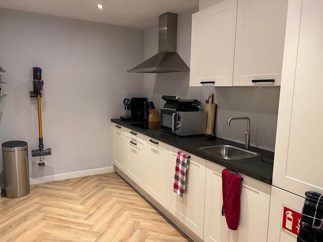 - keuken o.a. voorzien van inbouw koelkast en vriezer, vaatwasser en kookplaat met afzuigkap.