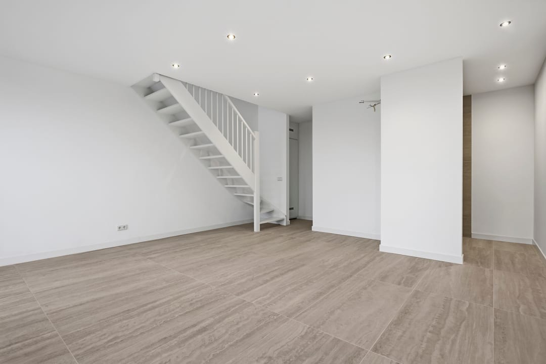 - Houten trap in witte grondlak;