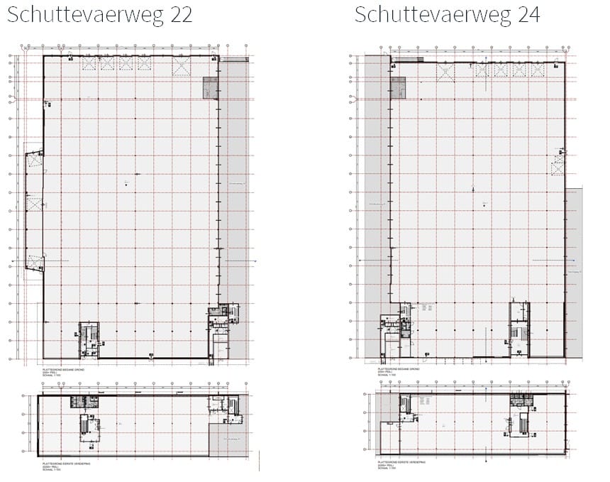 Bedrijfscomplex van in totaal circa 7.545 m² bedrijfsruimte, circa 1.515 m² kantoorruimte & ruim (overdekt) parkeerterrein met 91 plaatsen en buitenterrein gelegen aan de Schuttevaerweg 22-24 te Rotterdam Spaanse Polder.