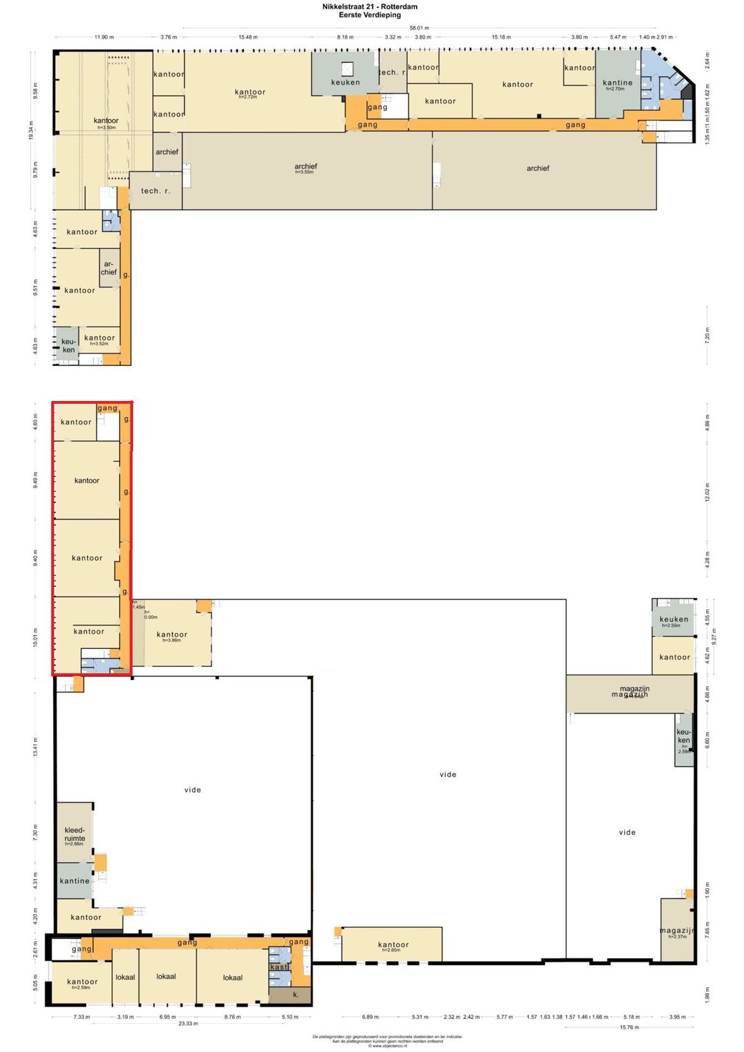 Het pand aan de Nikkelstraat 3 te Rotterdam betreft een functioneel bedrijfsobject met een ruime bedrijfshal en bijbehorende kantoor- en secundaire ruimten. De totale oppervlakte bedraagt circa 2.186 m² v.v.o., verdeeld over circa 1.571 m² bedrijfsruimte op de begane grond en circa 615 m² kantoor- en secundaire ruimte verdeeld over de begane grond en eerste verdieping.