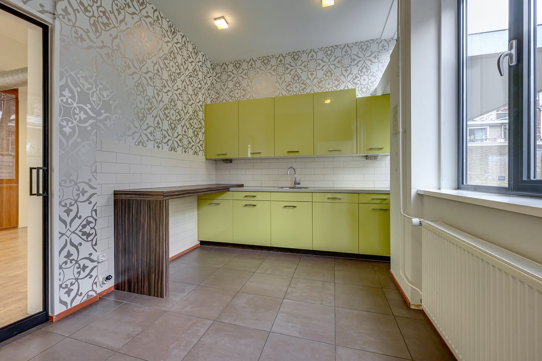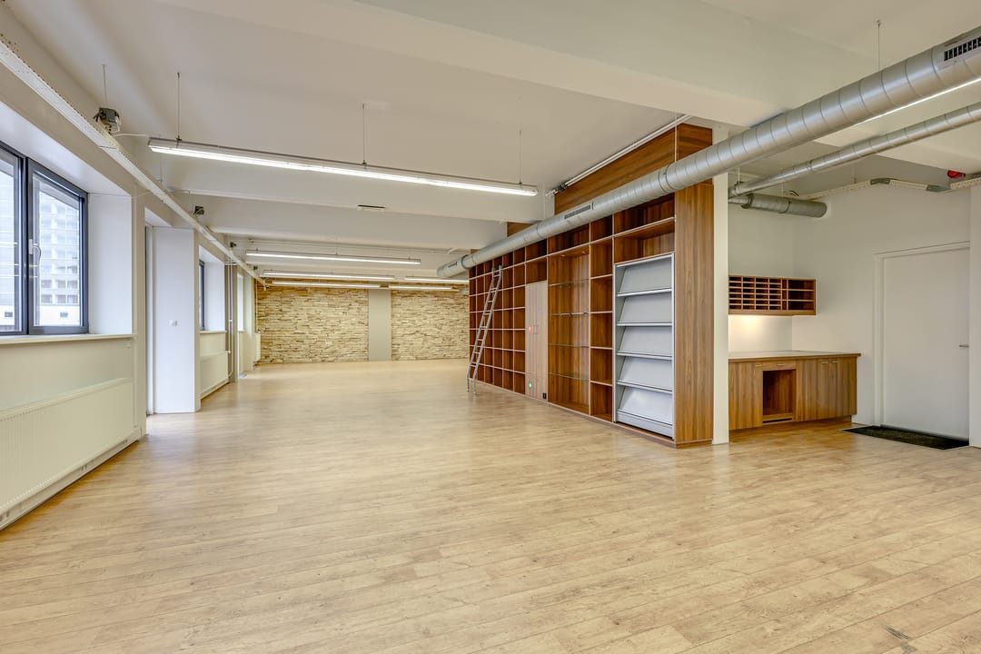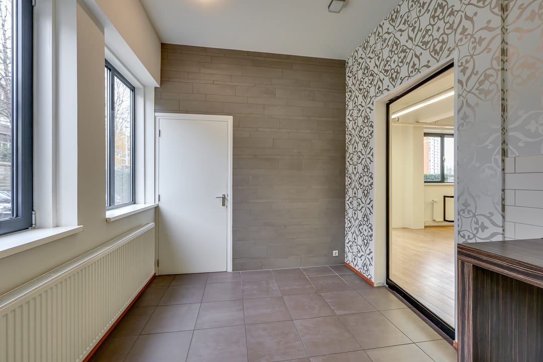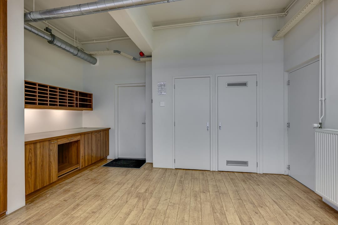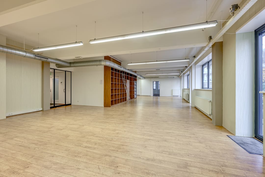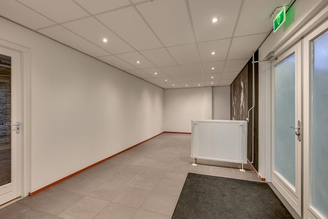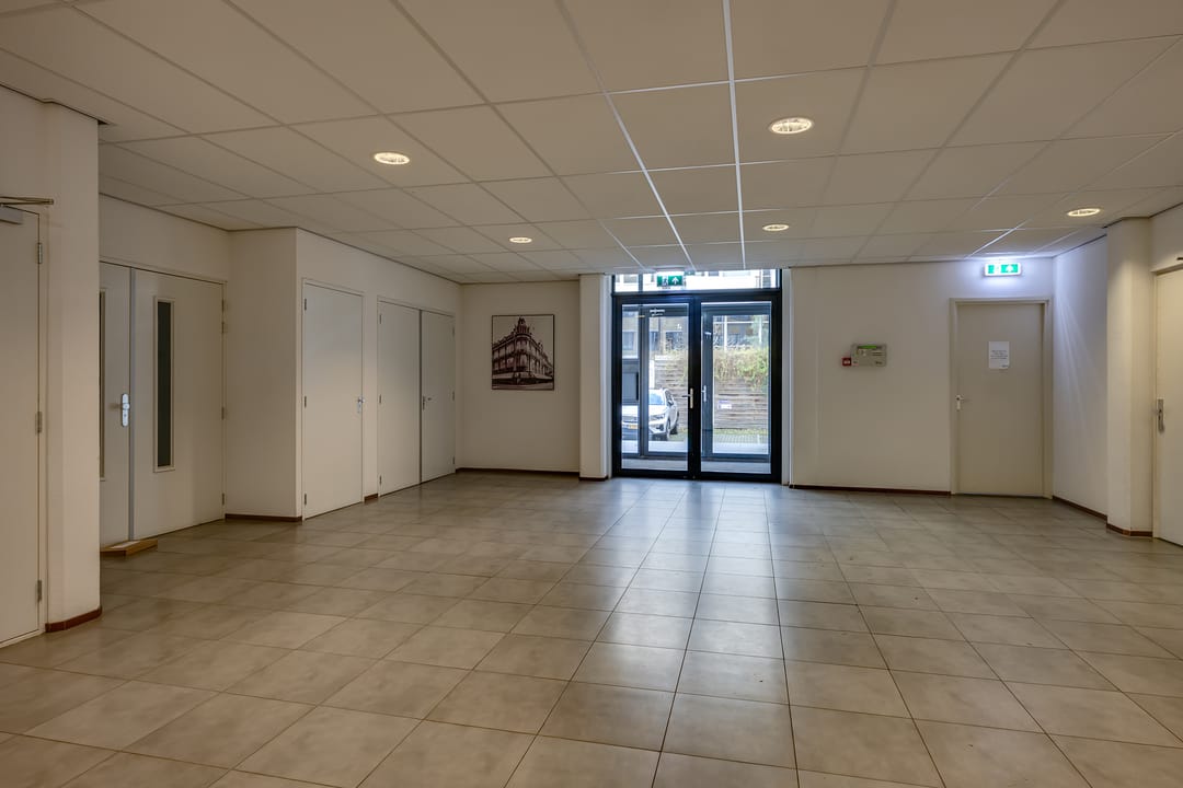 De totale oppervlakte bedraagt ca. 250 m² op de begane grond en bestaat uit een ontvangstruimte, open kantoorruimte, een separate vergaderruimte alsmede keukenruimte, welke is voorzien van de aanwezige vaatwasser en koelkast. Een gescheiden dames- en herentoilet. In de ruimte is een mechanische ventilatie, welke centraal wordt geregeld waardoor er een comfortabel werkklimaat heerst.