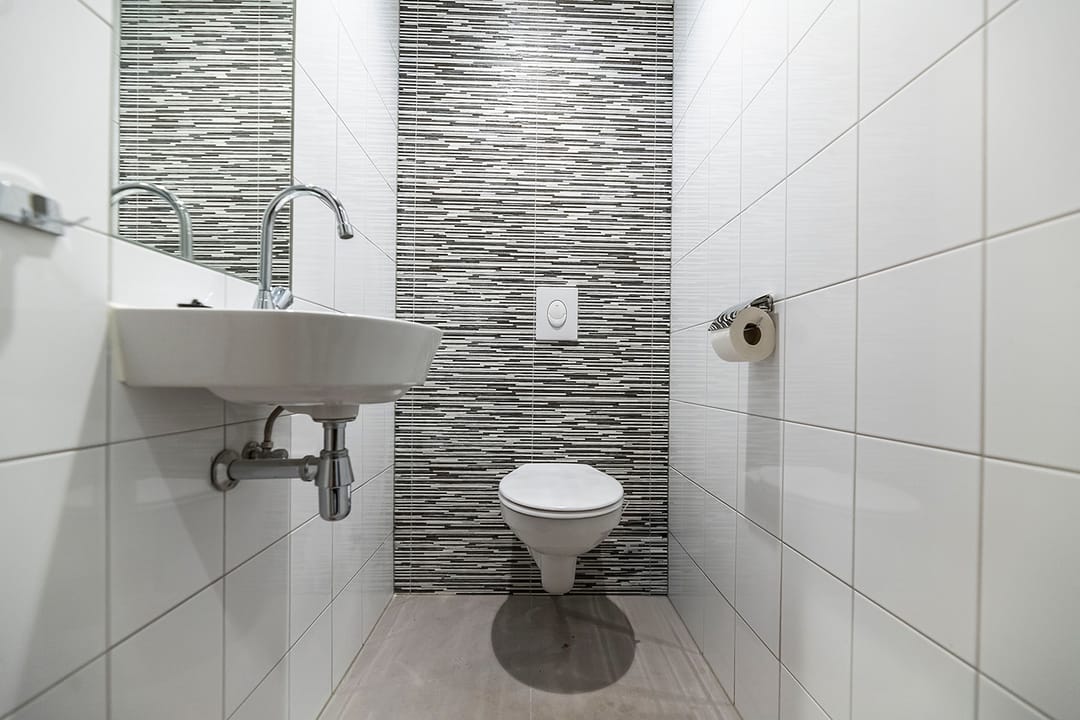 - Luxe betegelde toilet v.v. wandcloset, fonteintje en mechanische ventilatie;